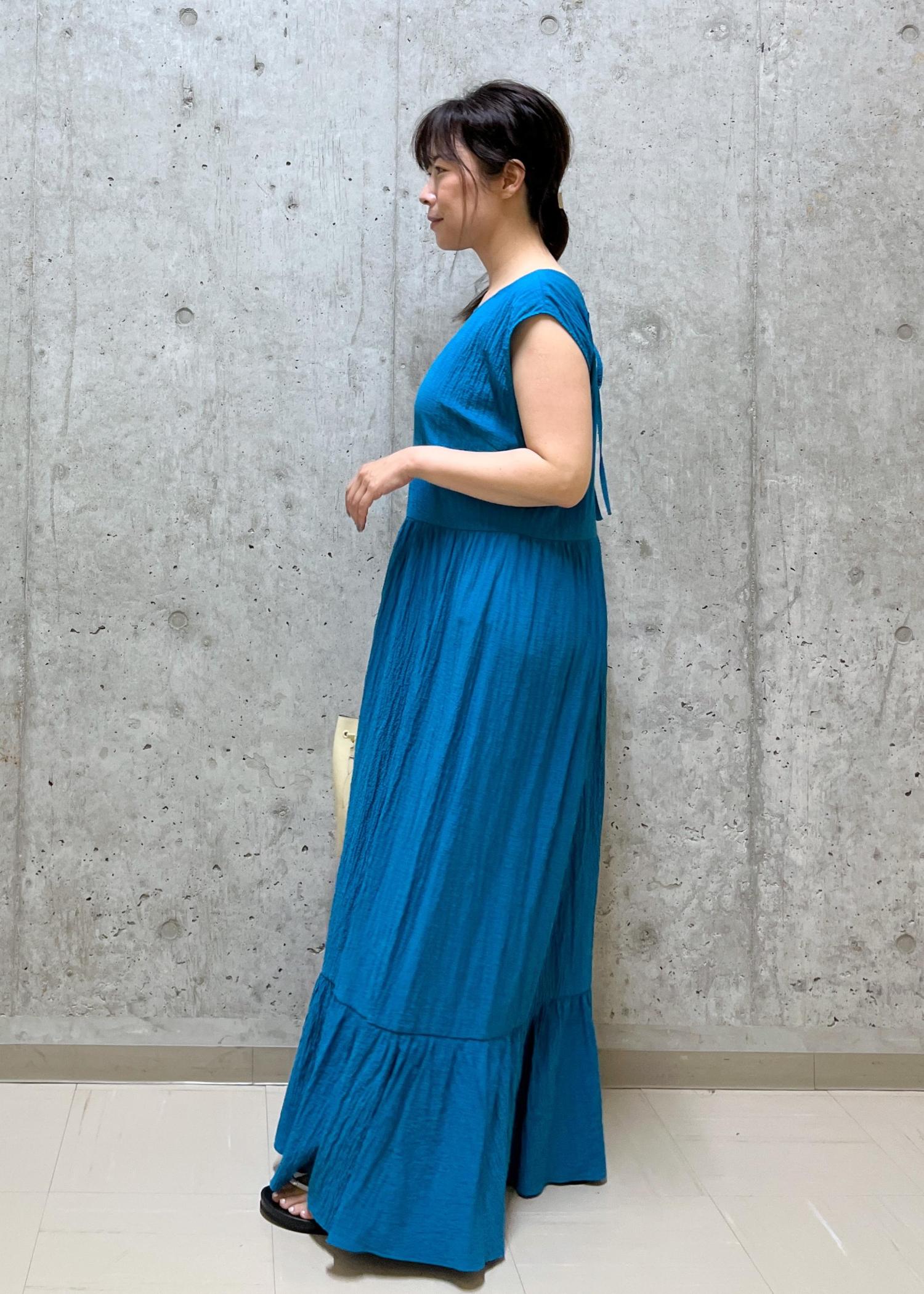 リネン混サッカー素材で涼しく夏にオススメのワンピースです。