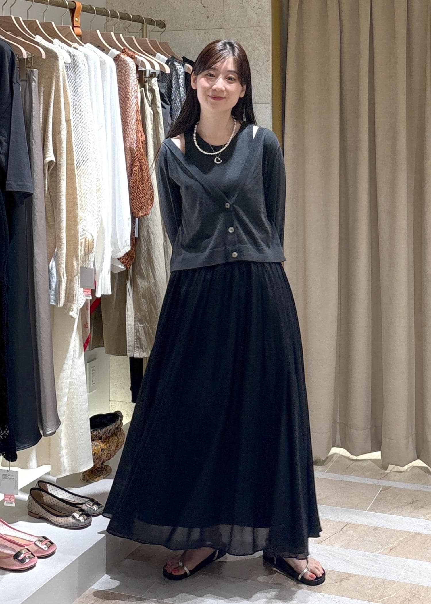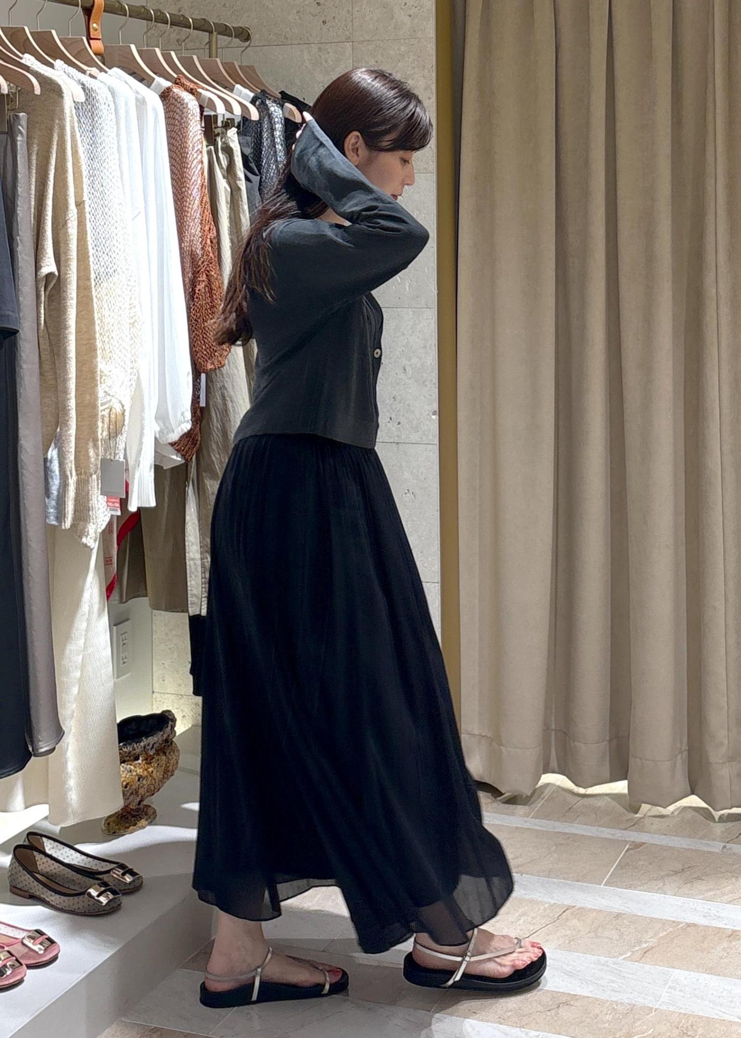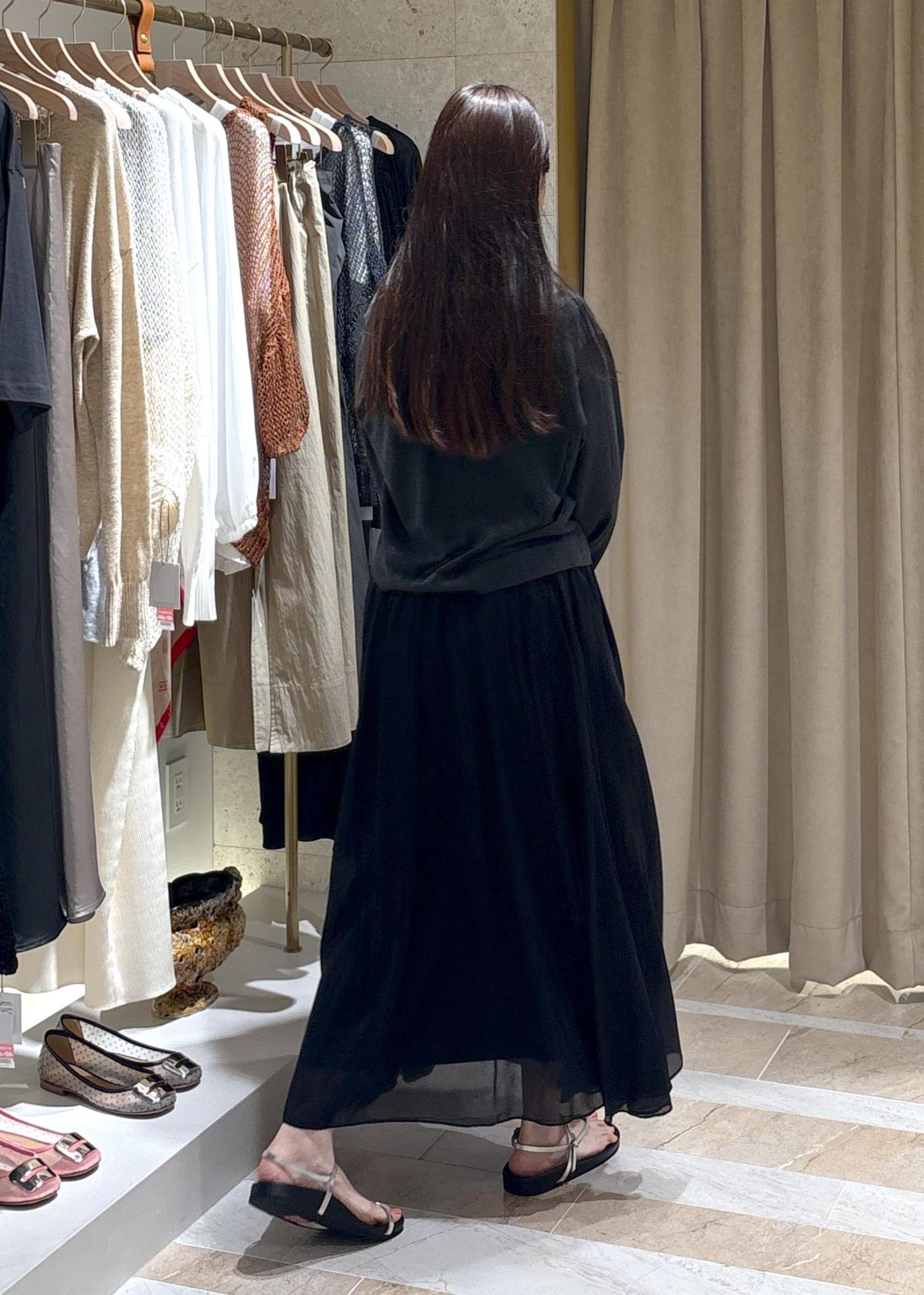 アウトレットROPÉ【洗える】コットンシルクスカートブラック / F¥11,000レビュー柔らかく軽い着心地のスカート。