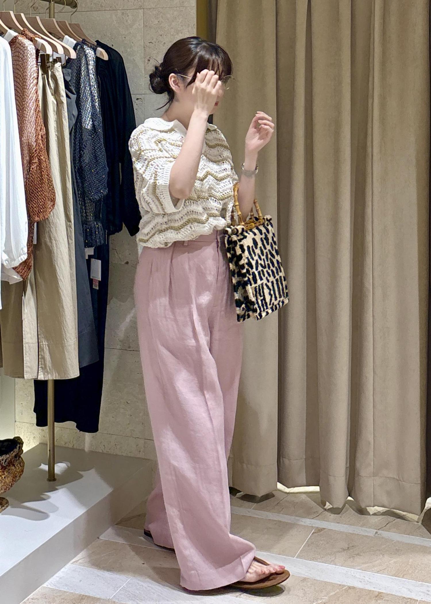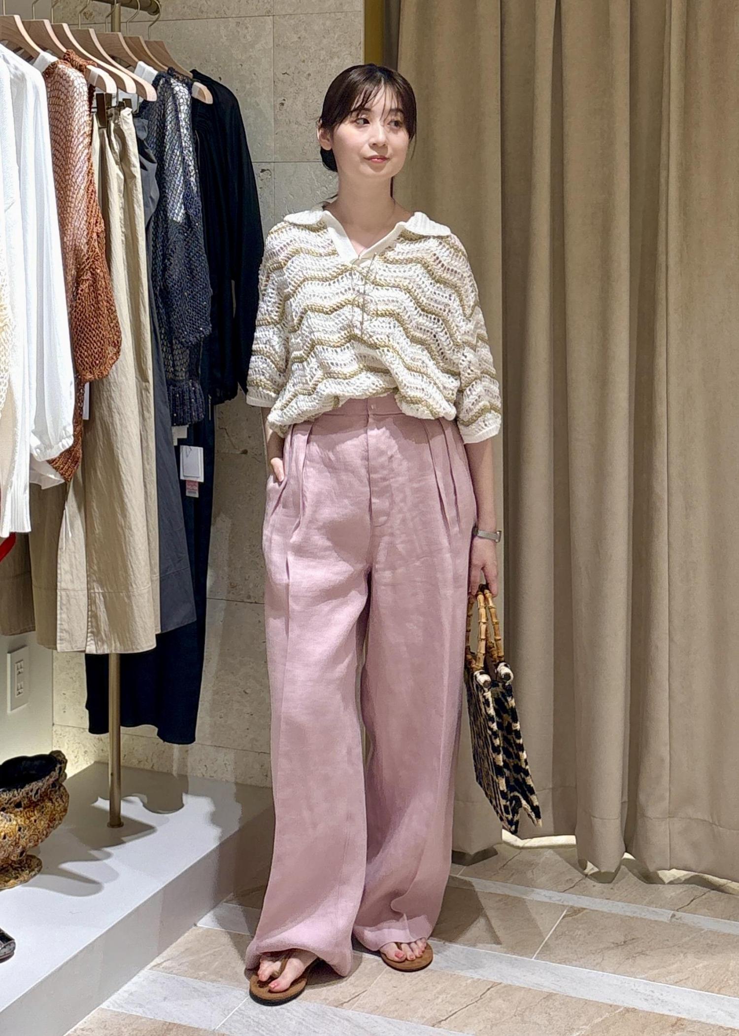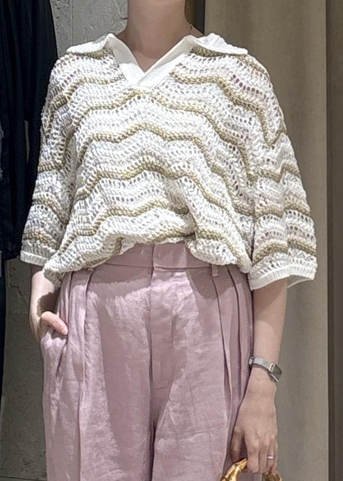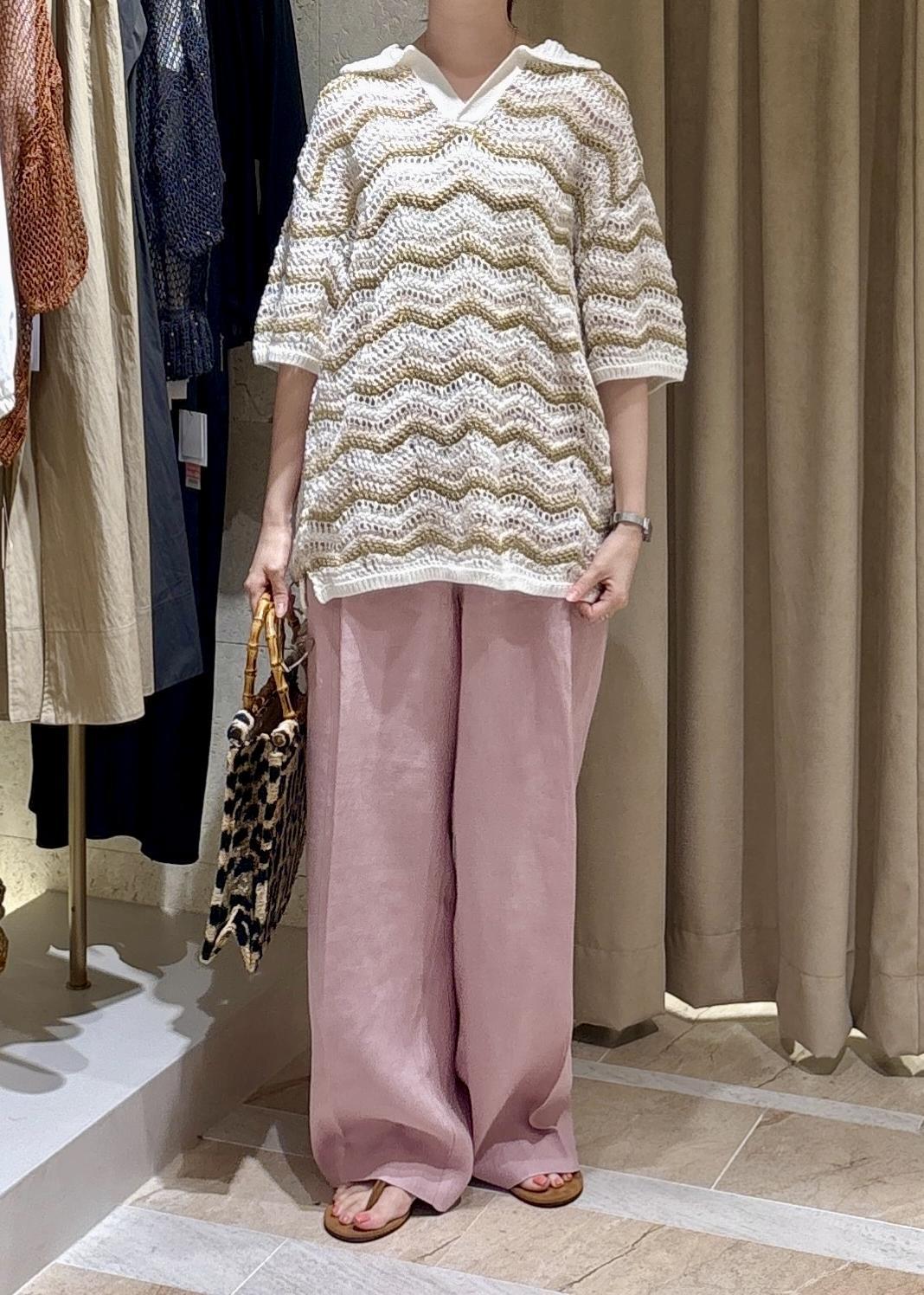 お気に入りのリネンパンツと他にないデザインのサマーニットのポロシャツで好きなもの詰め合わせコーデ。