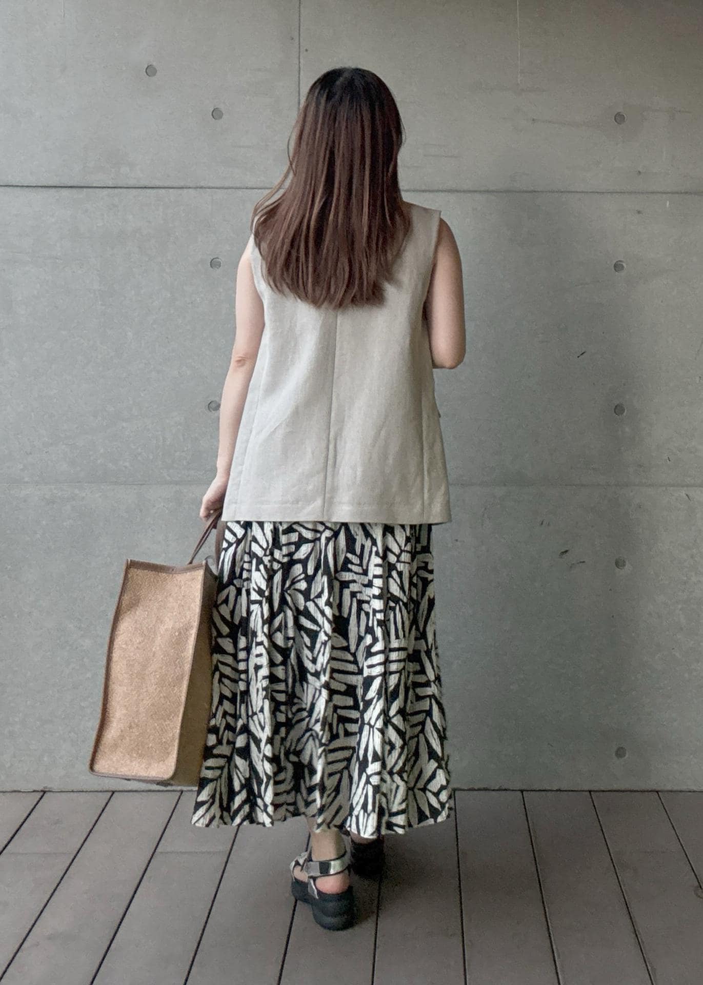 ジレを外せば女性らしいシルエットでぐんと華やかな印象にもなります。旅行中のディナーにも対応できるのもポイントです♪