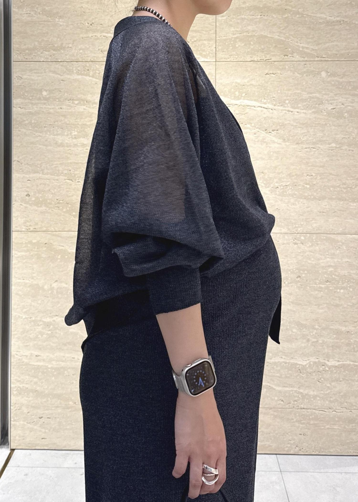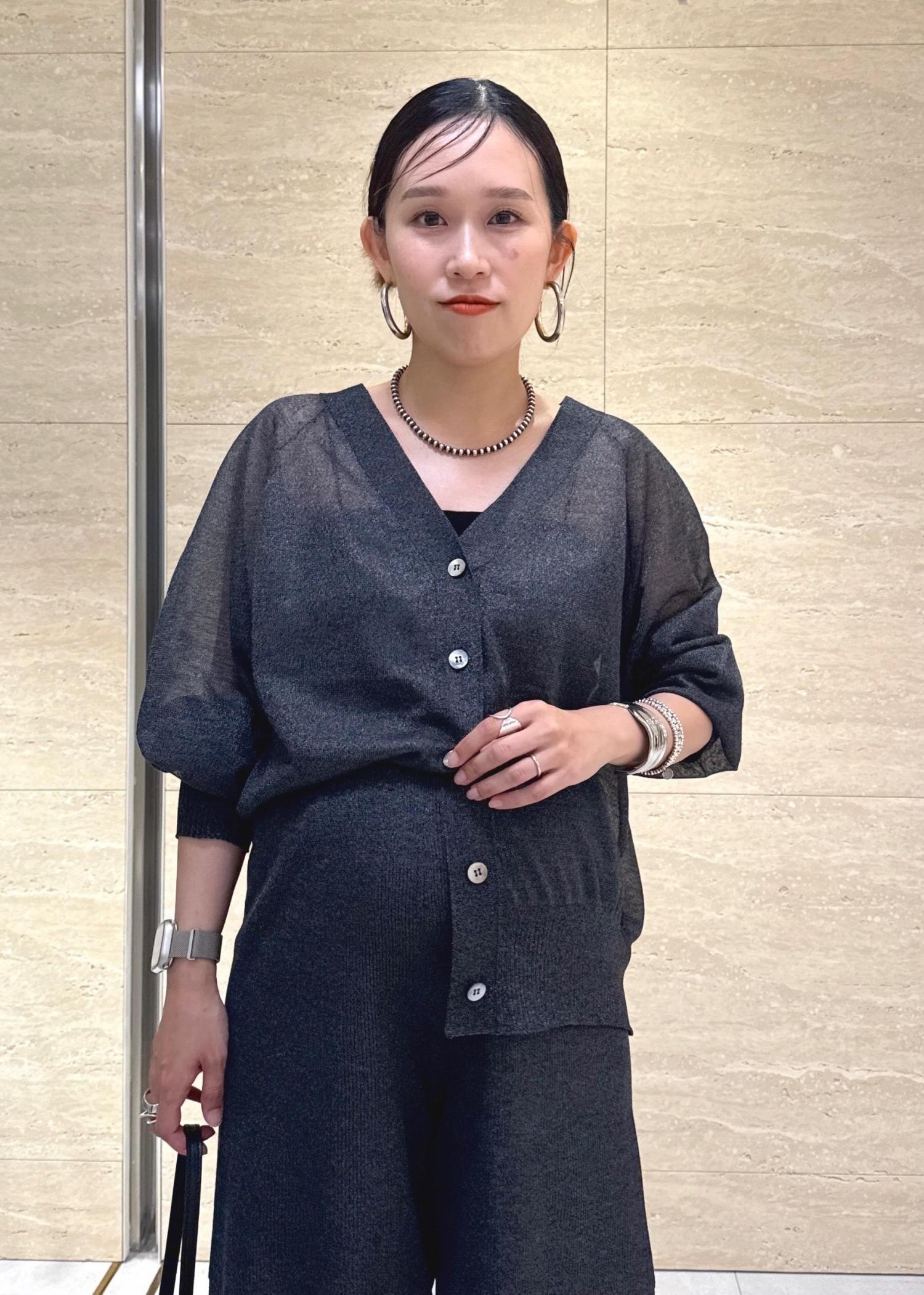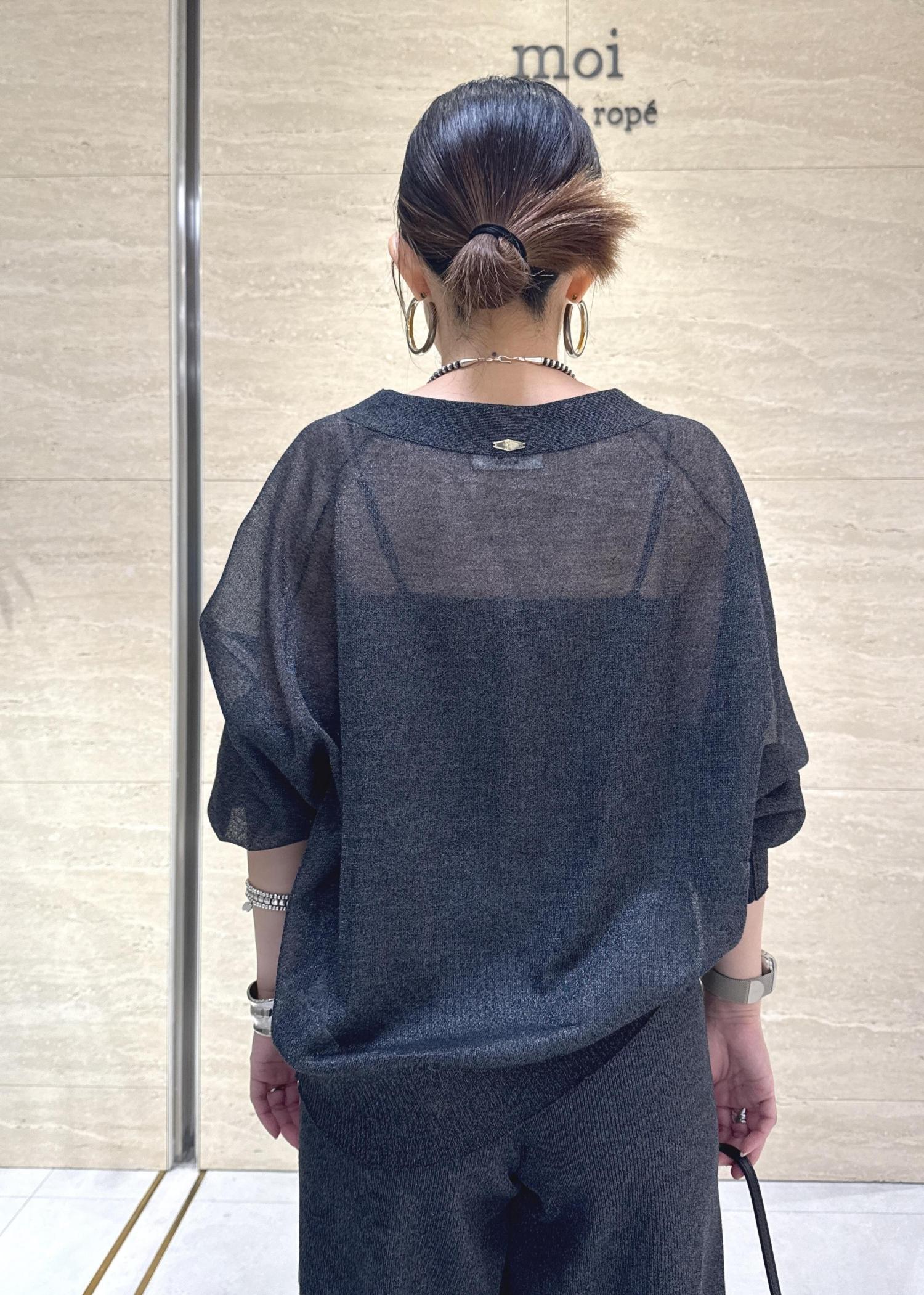 SALON adam et ropéブライトラメVネックシアーカーディガン[一部WEB限定カラー・手洗い可能]シルバー / F¥11,880レビュー程よくゆったり。