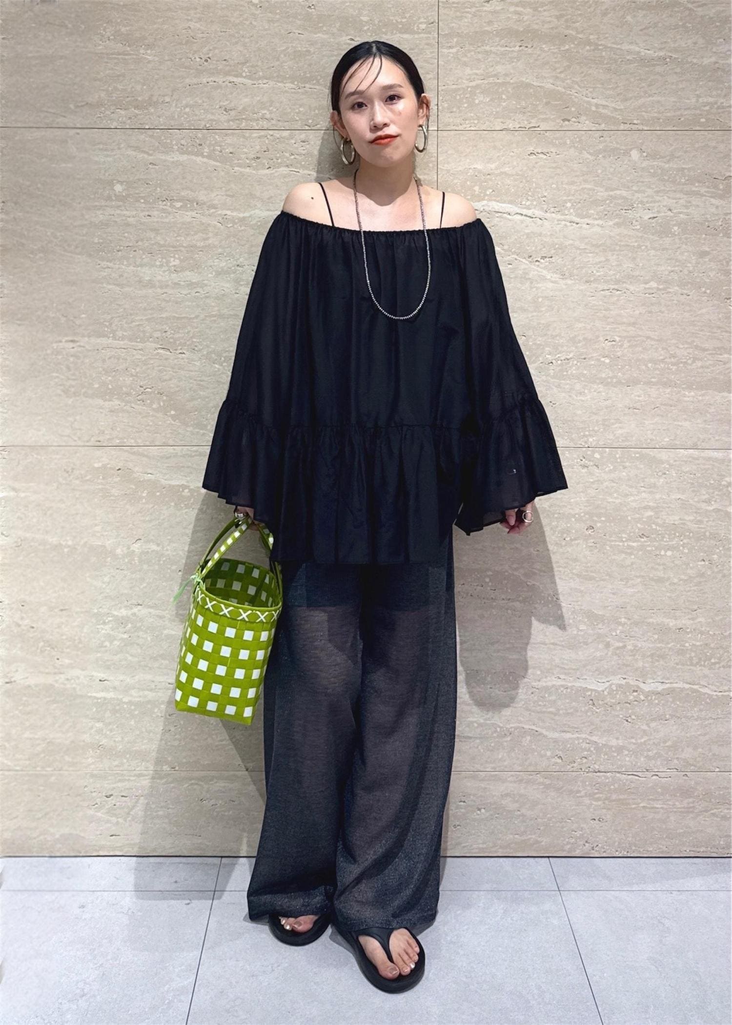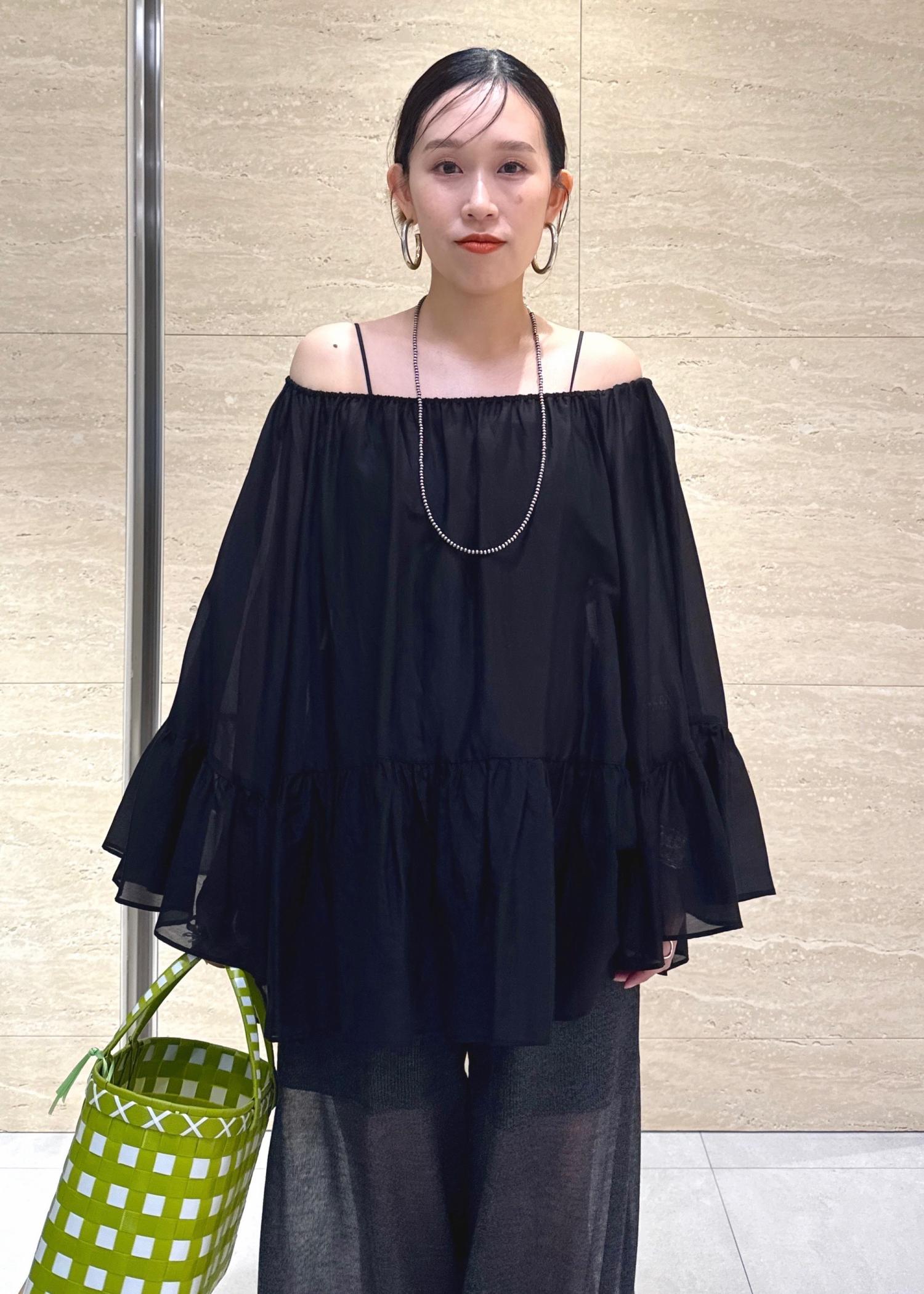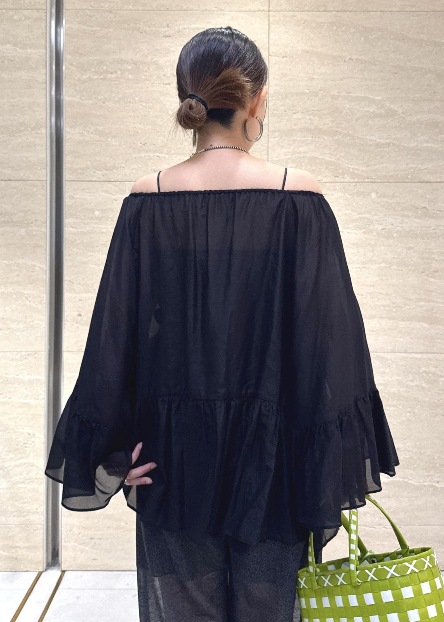 首周りがゴムになっている為、そのまま着用してもオフショルダーにしても使っていただけます。 -