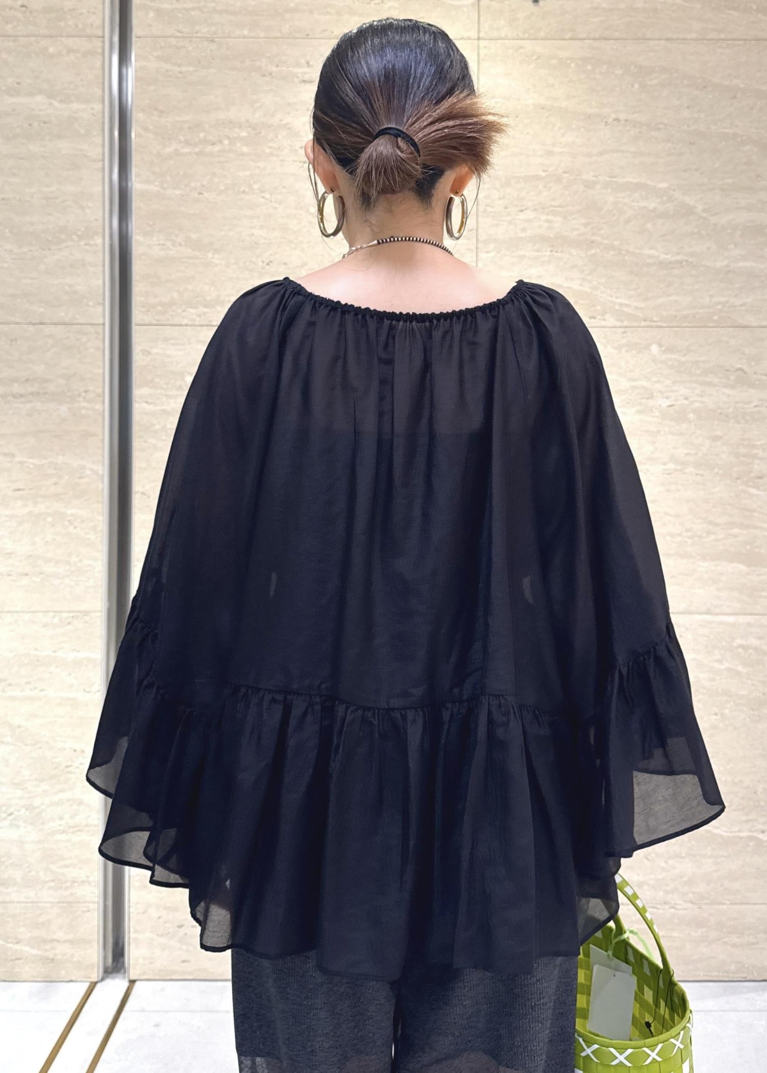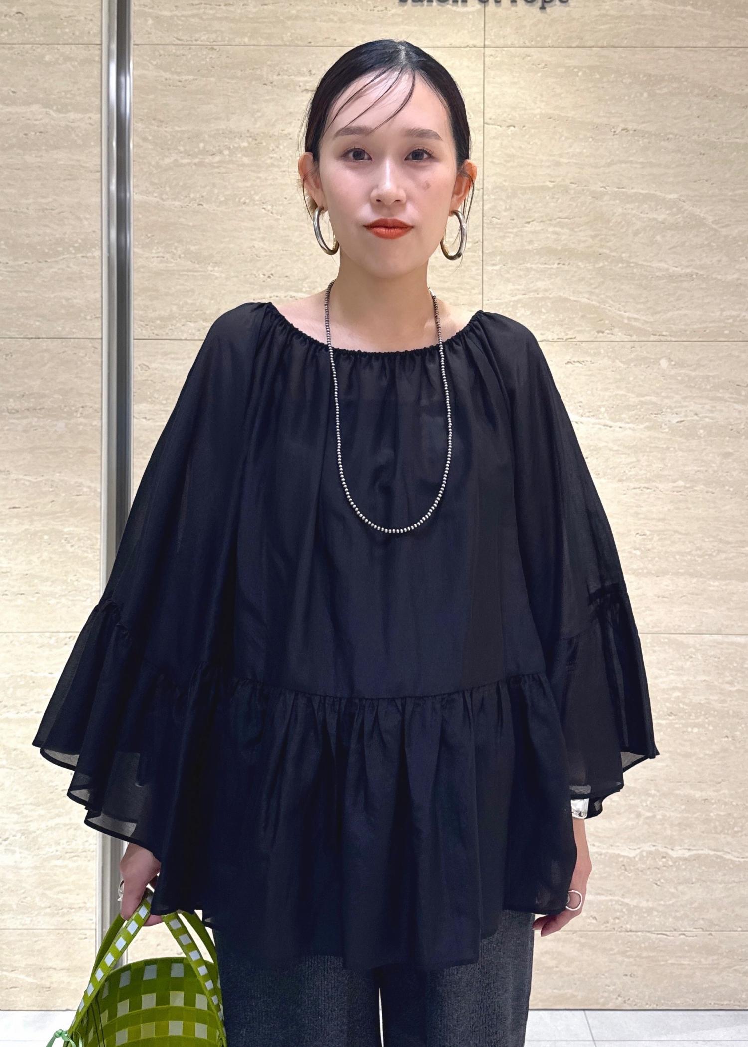 アウトレットSALON adam et ropéコットンシルクレジェールフレアブラウスブラック / F¥9,240レビューコットンとシルク素材で、程よい艶感があり上品な印象です。