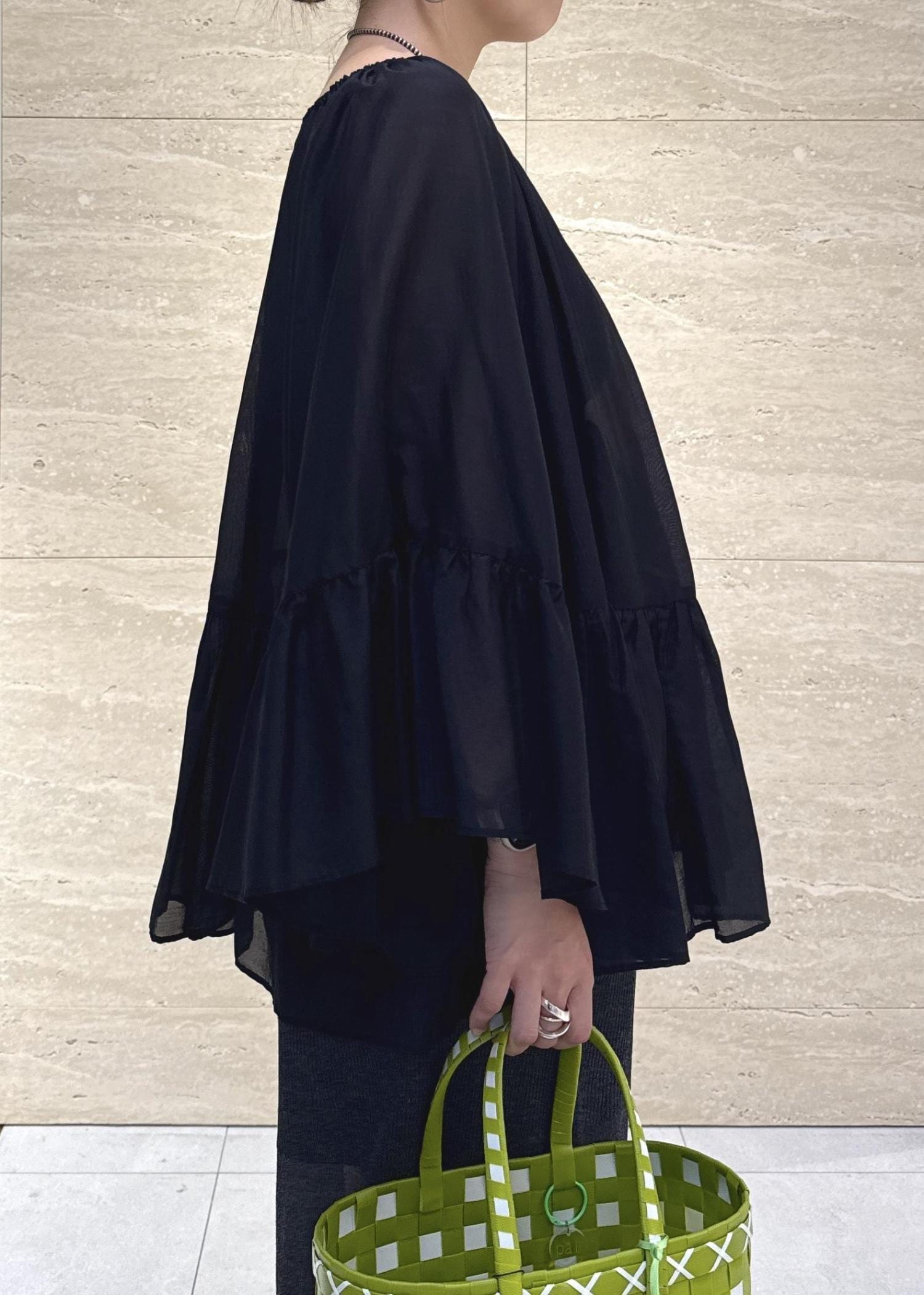 ふんわりしたシルエットで風通しよく、少し透けるほど薄手なので、夏でも涼しく着用できます。