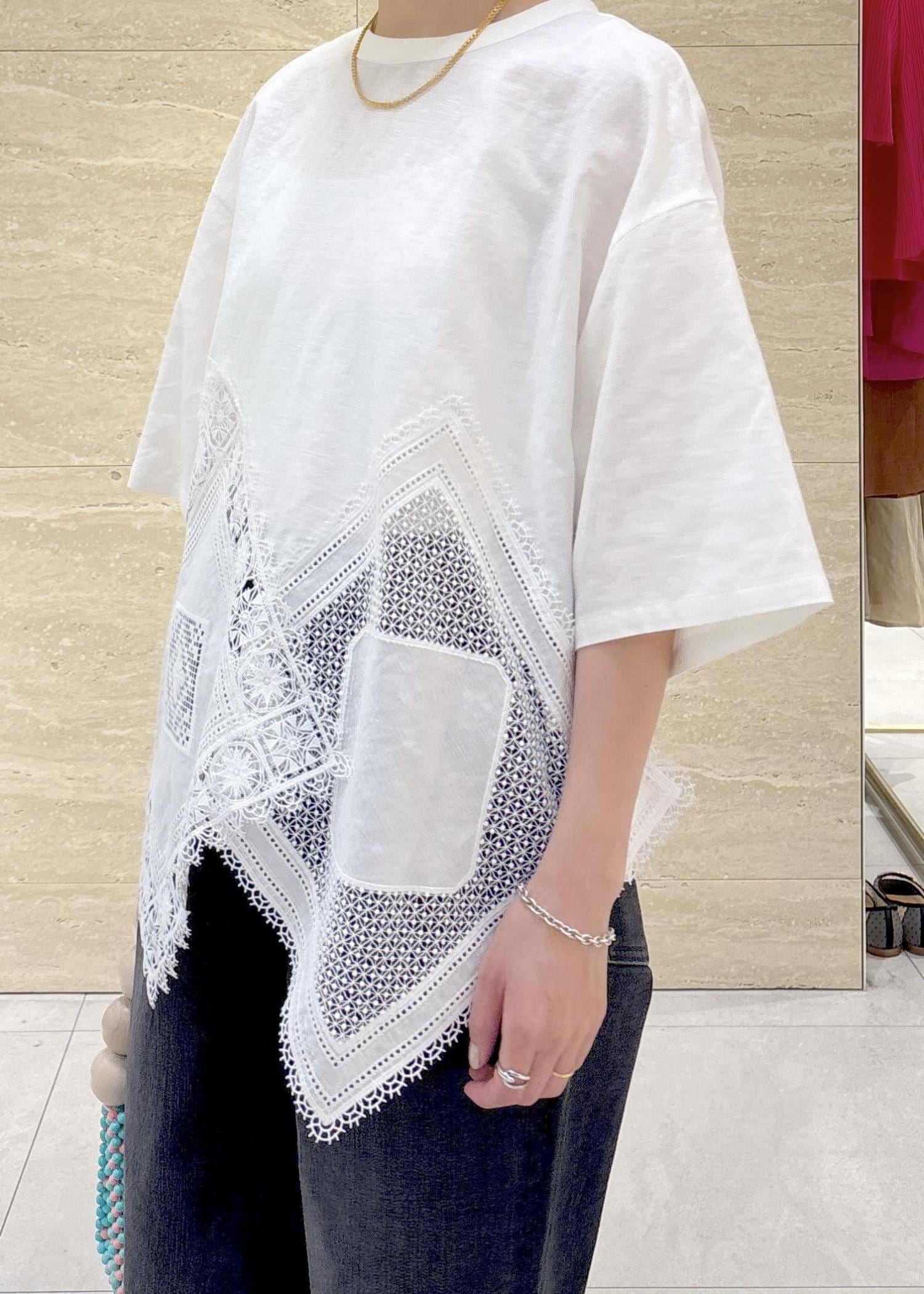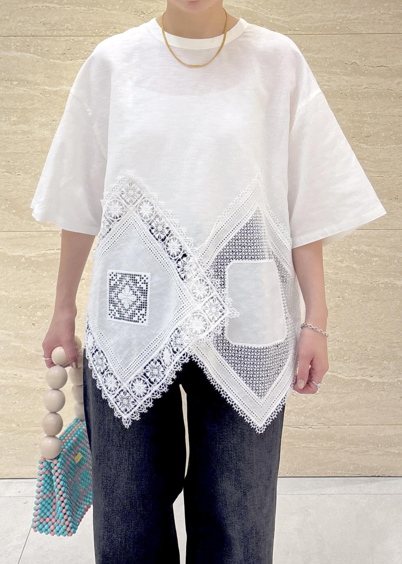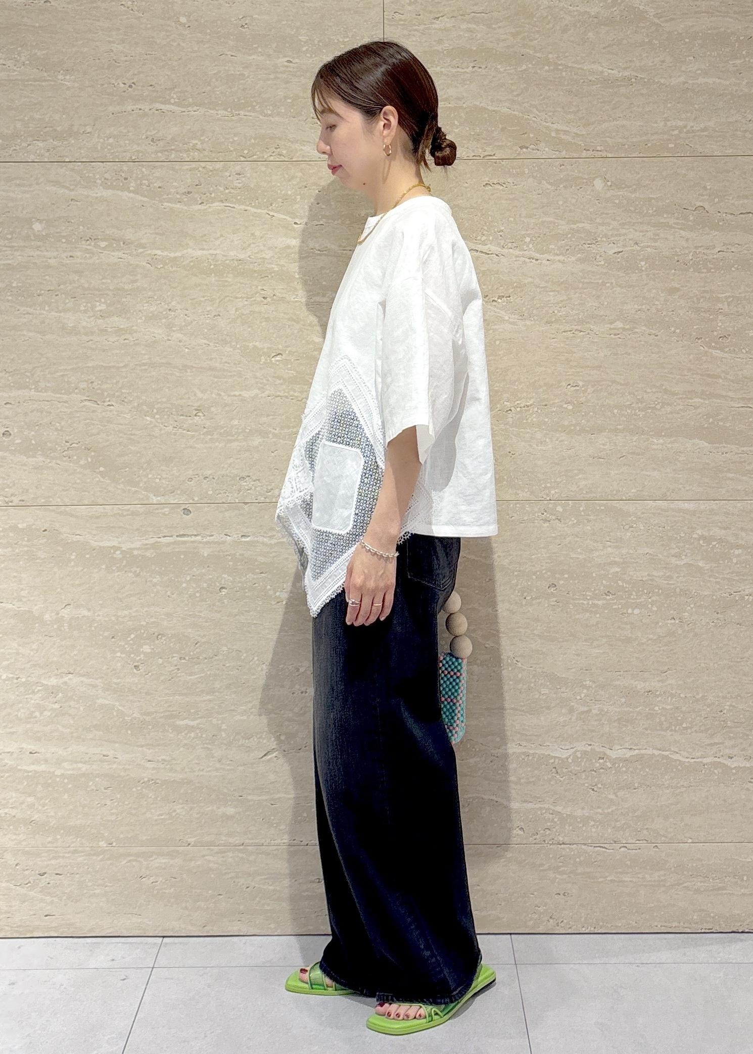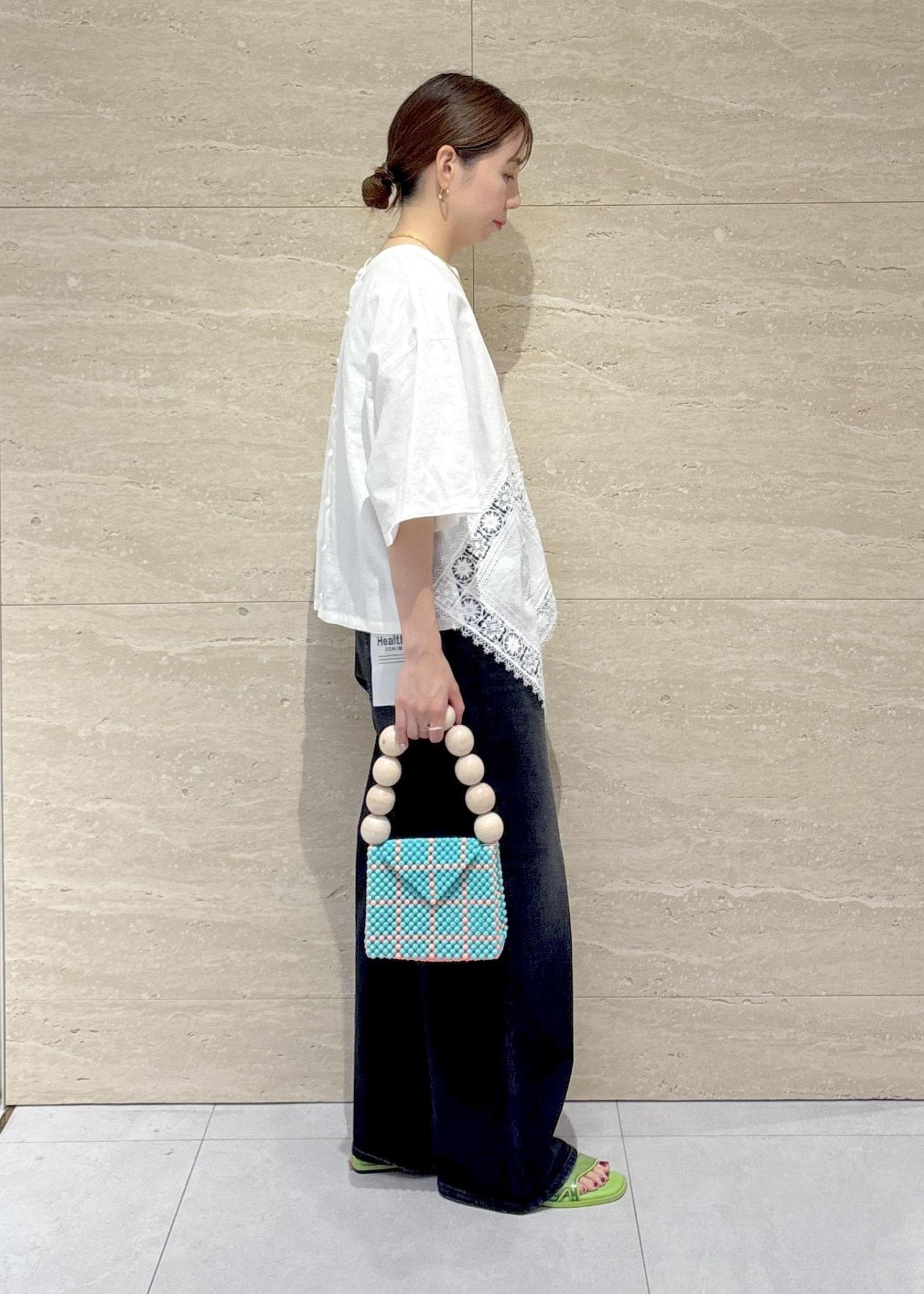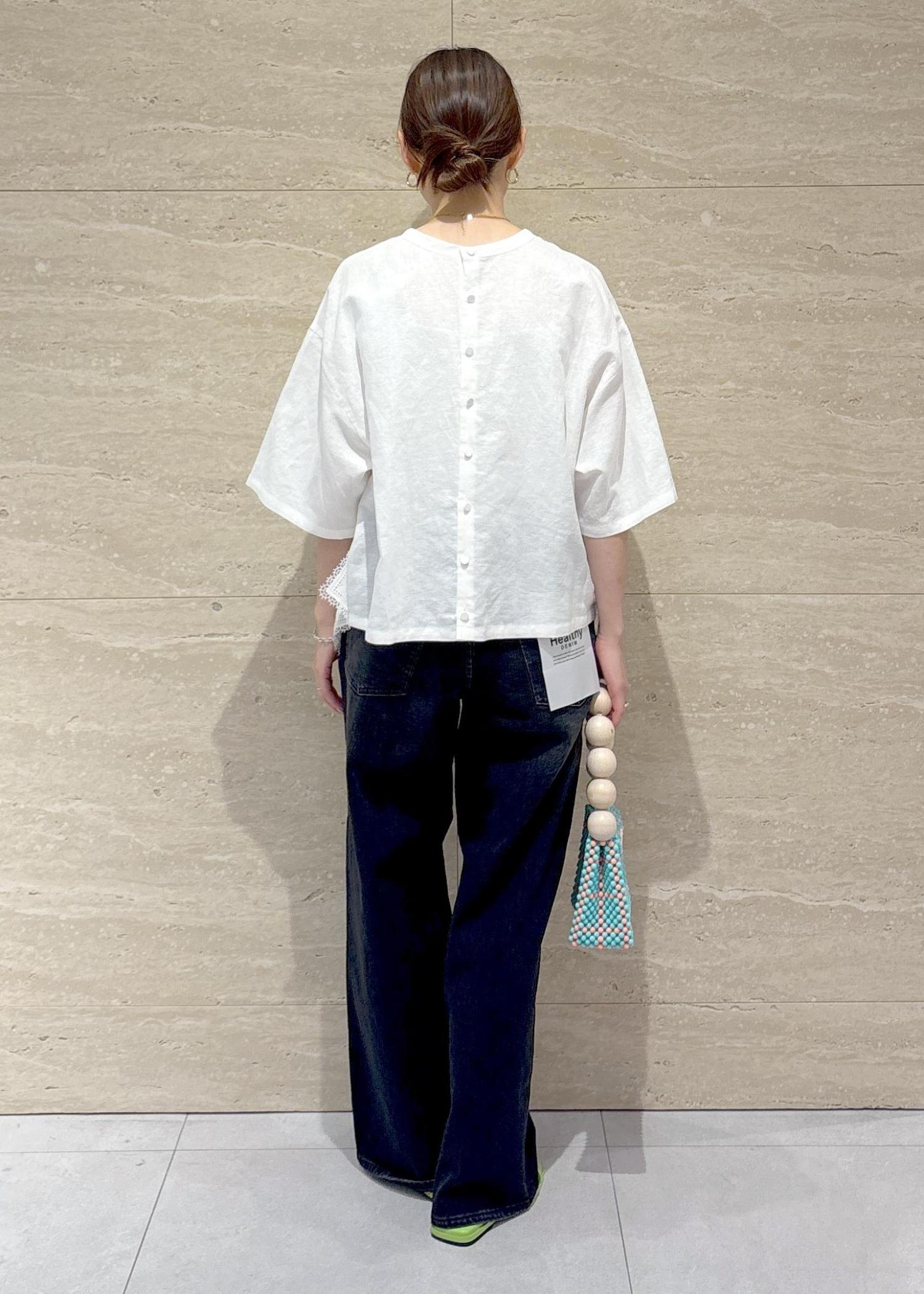 レースが存在感のあるトップスなので、シンプルにデニムでコーディネートしました。