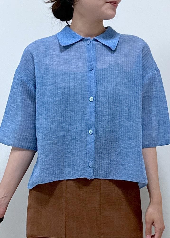 アウトレットROPÉ【洗える】シアークロップドポロニットブルー / F¥9,900レビュー身長162cmでFサイズ着用。