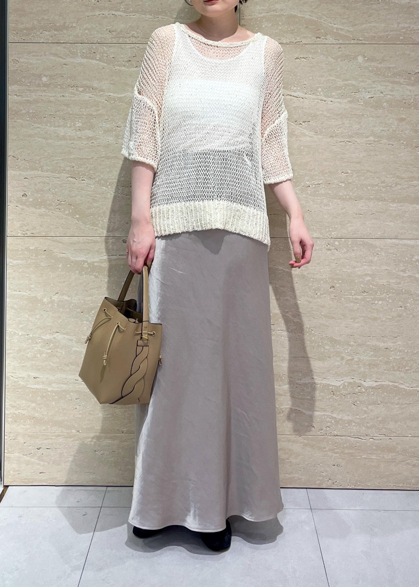 アウトレットSALON adam et ropéギマコットンスパンコールプルオーバーオフホワイト / F¥6,600レビュースパンコールがキラッと華やかにしてくれるデザイントップス。肩がオーバーに落ちているのが、抜け感が出ておしゃれに見せてくれます。