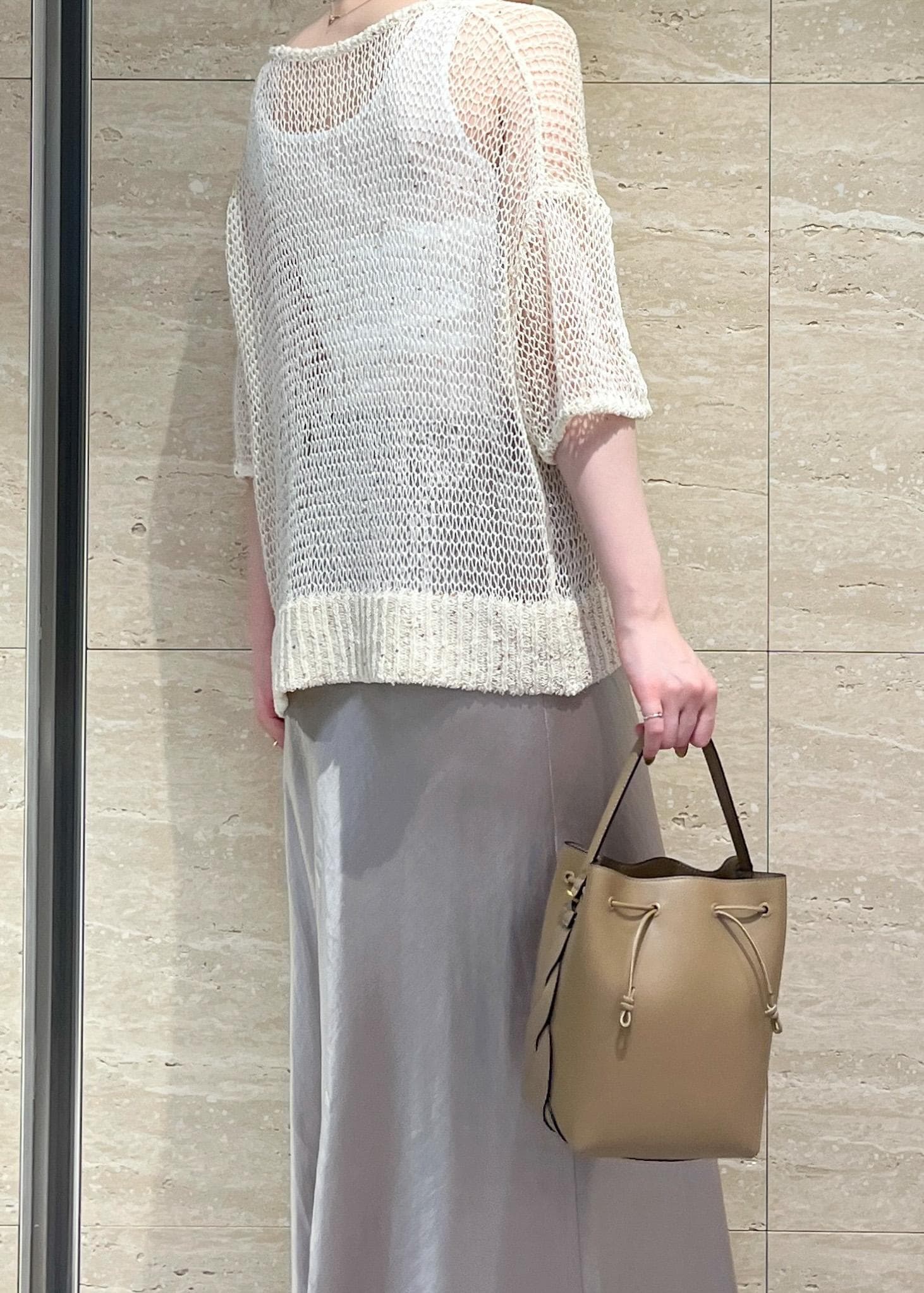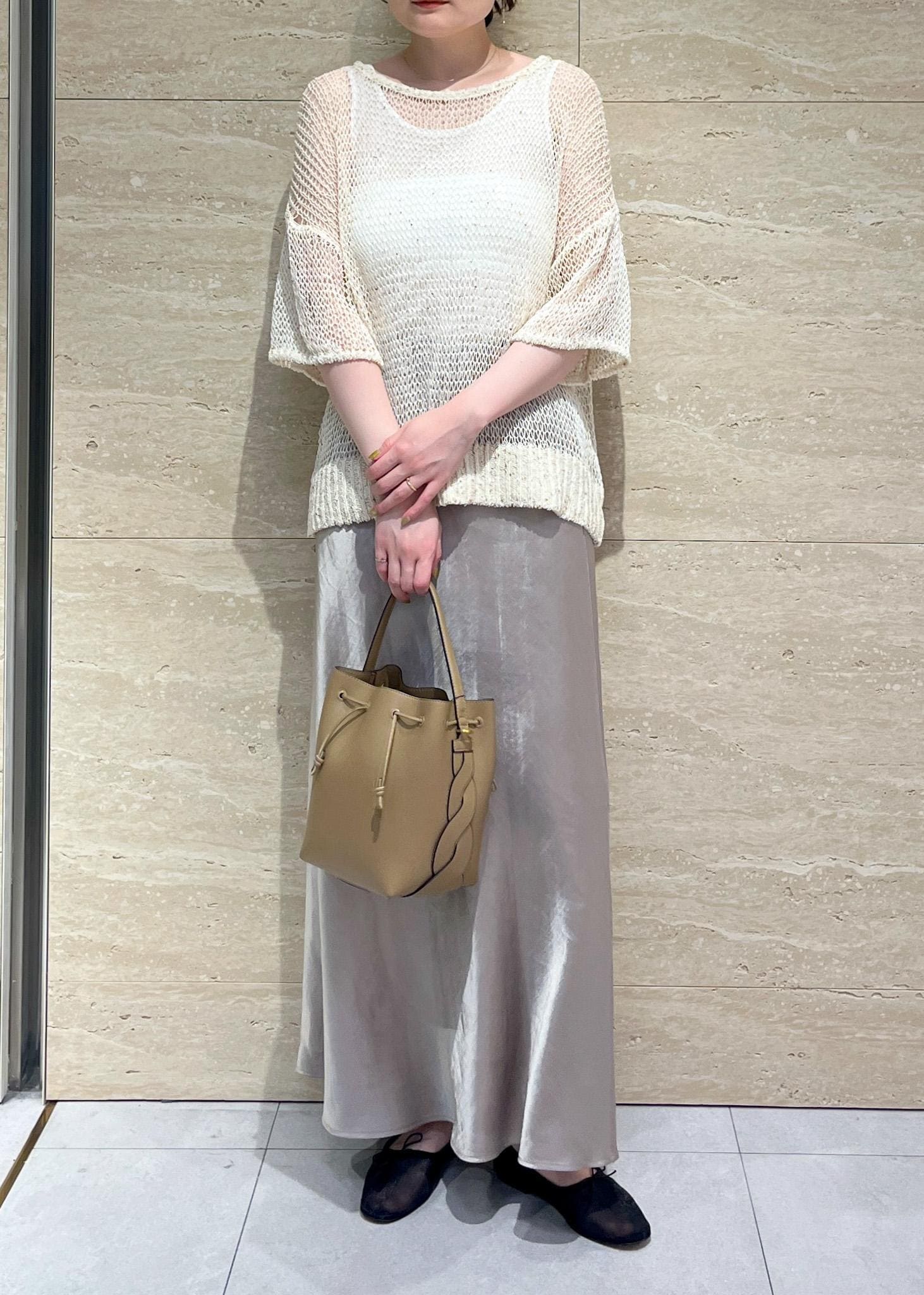 アウトレットROPÉ2WAYドロストレザーバッグベージュ系 / F¥13,750レビュー巾着型のコロンとしたシルエットが可愛らしいバッグ。荷物少なめの日におすすめです。