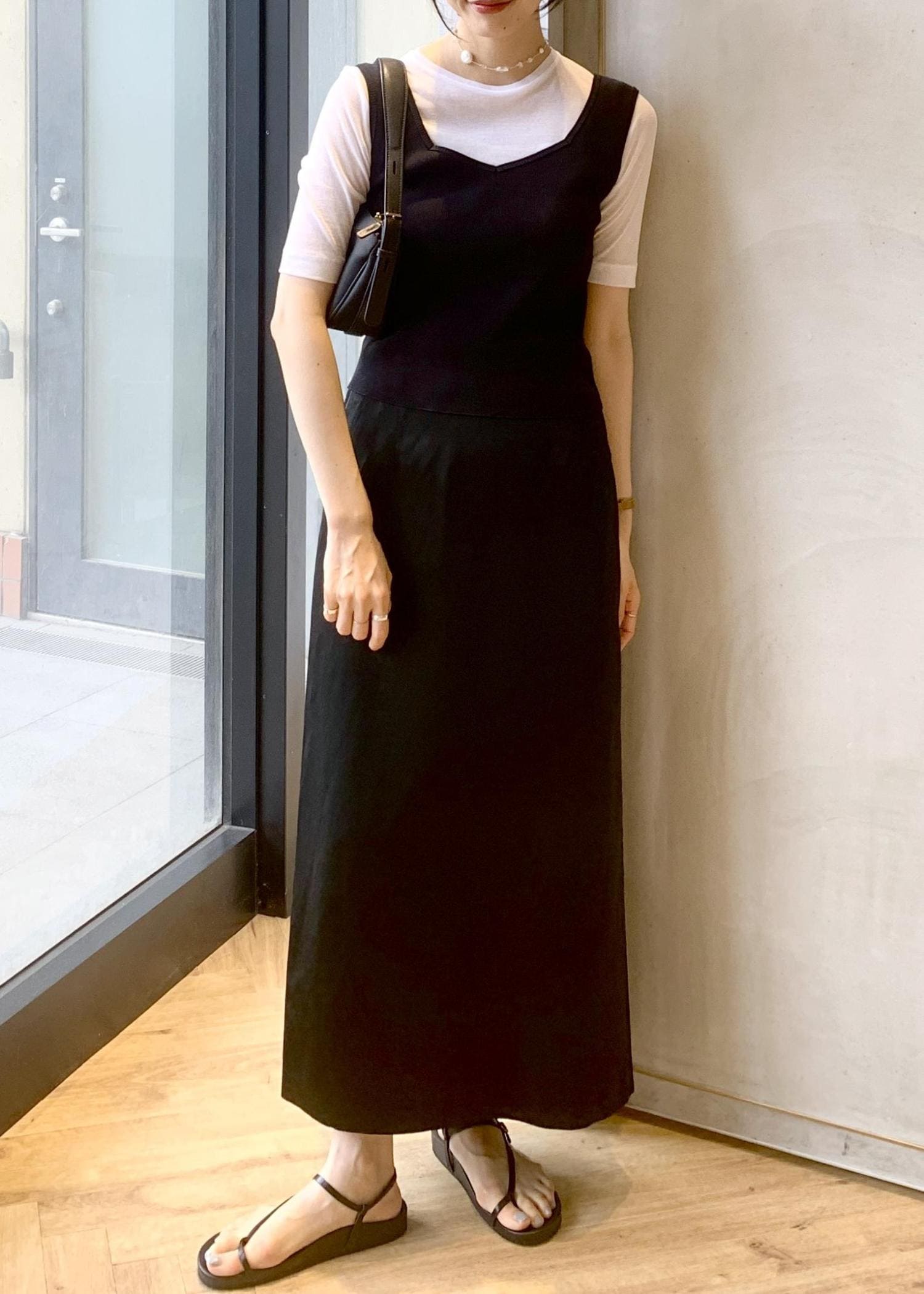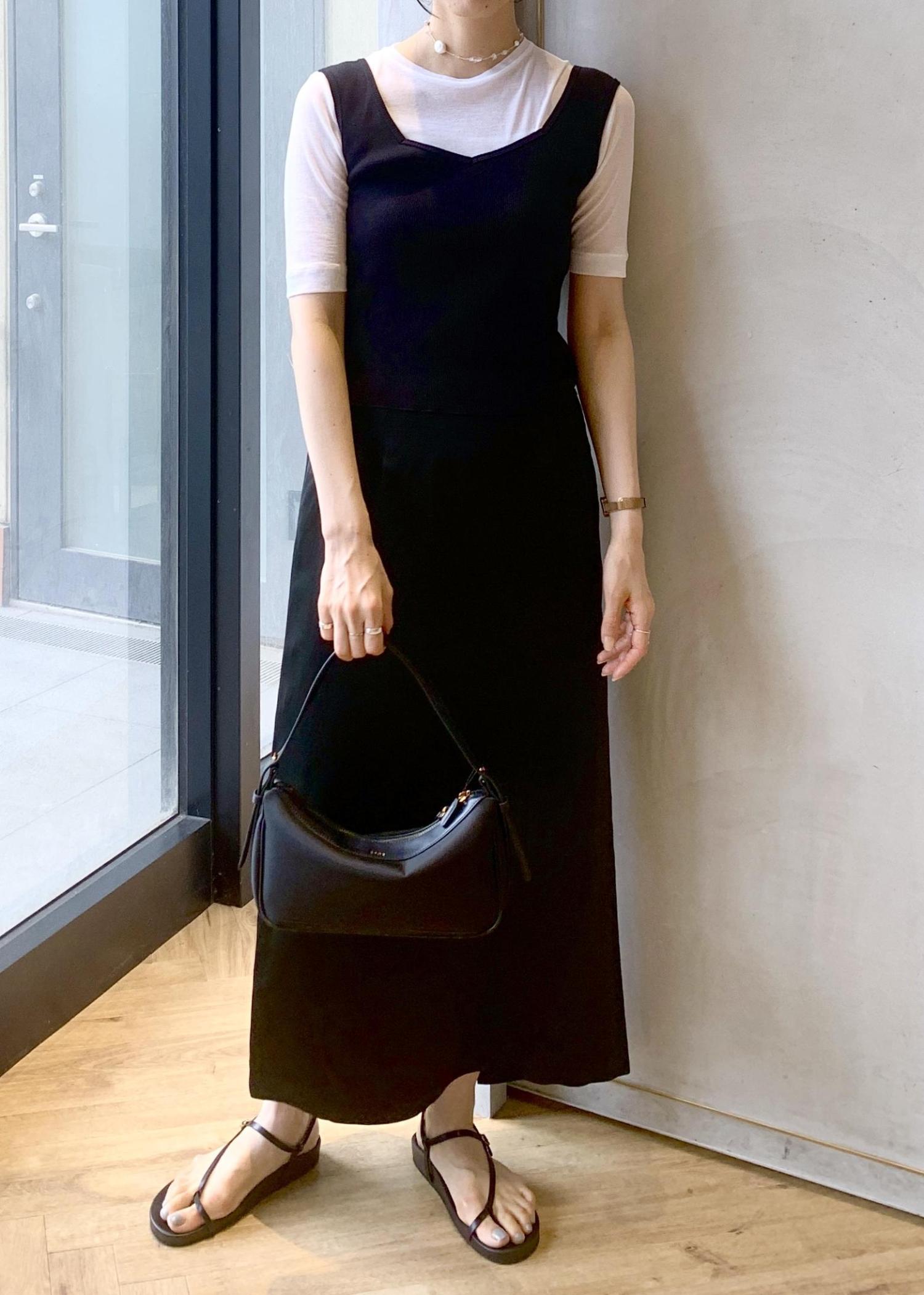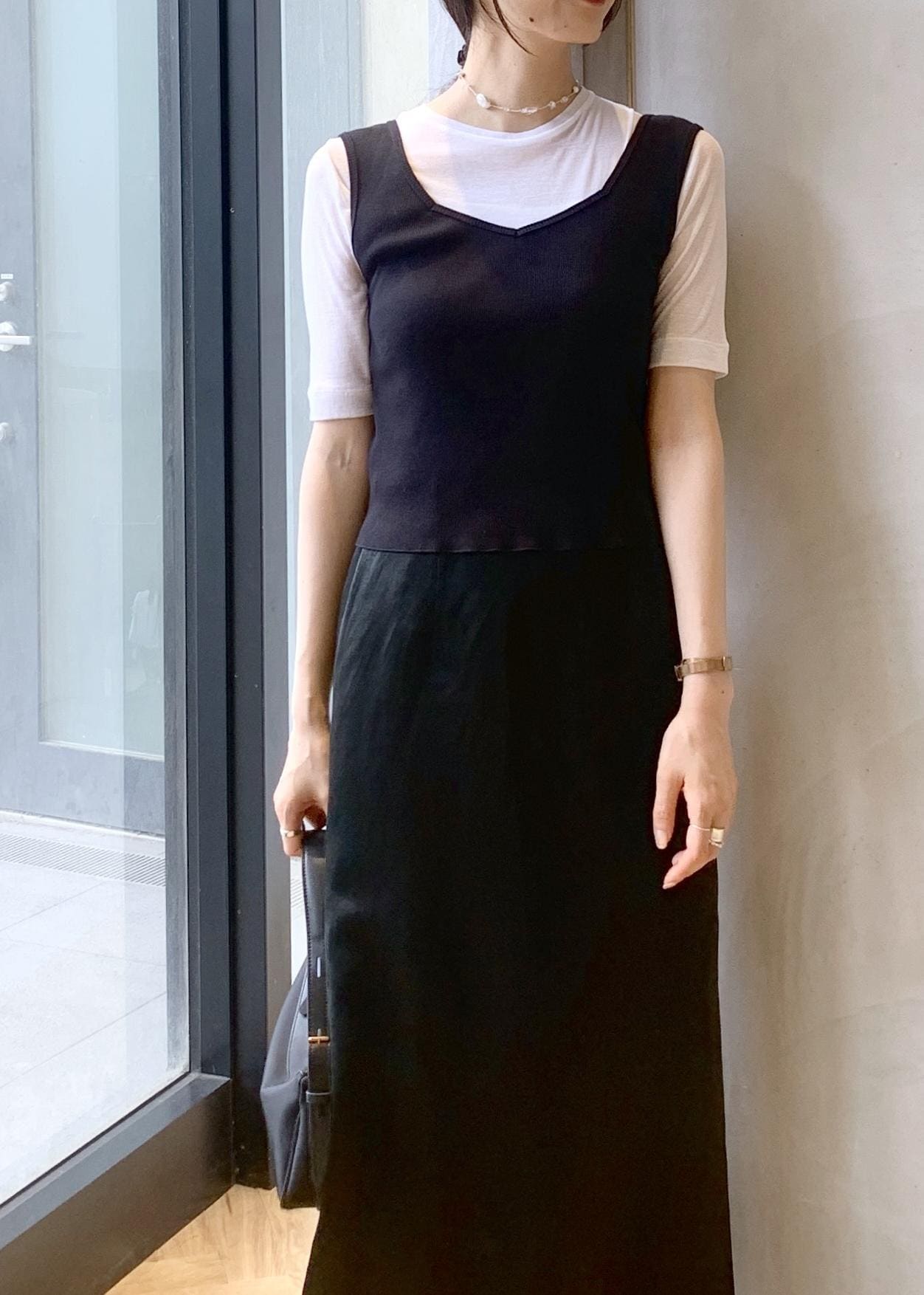 五分丈の袖丈なのでキャミワンピースやビスチェなどレイヤードにも使いやすいです。