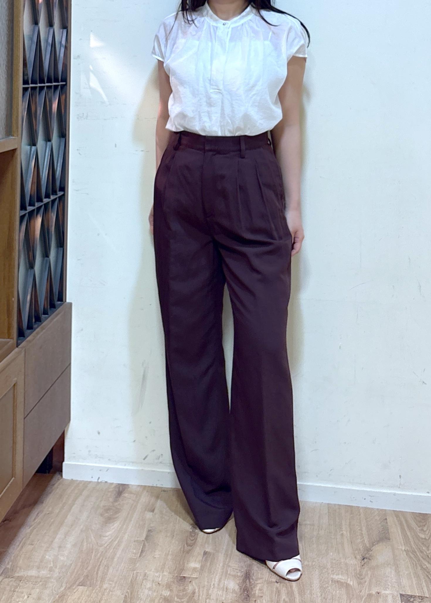 程よいゆとりがありリラックスして着られるパンツは、センターブレスのシャープさでスッキリ見えし女性らしいスタイルを楽しめます♪