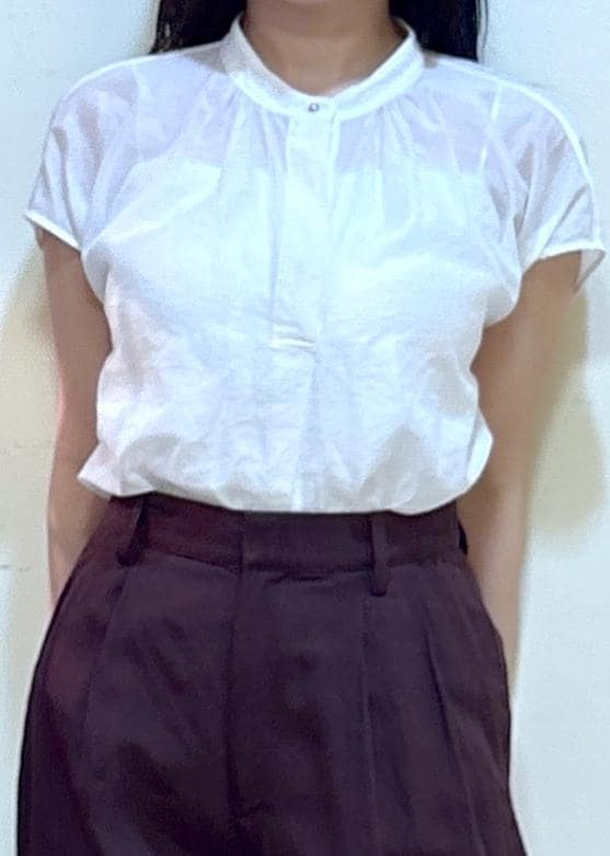 アウトレットROPÉ【洗える】キュプラシルク フレンチスリーブブラウスホワイト / F¥9,900レビュー身長152cm Fサイズ着用