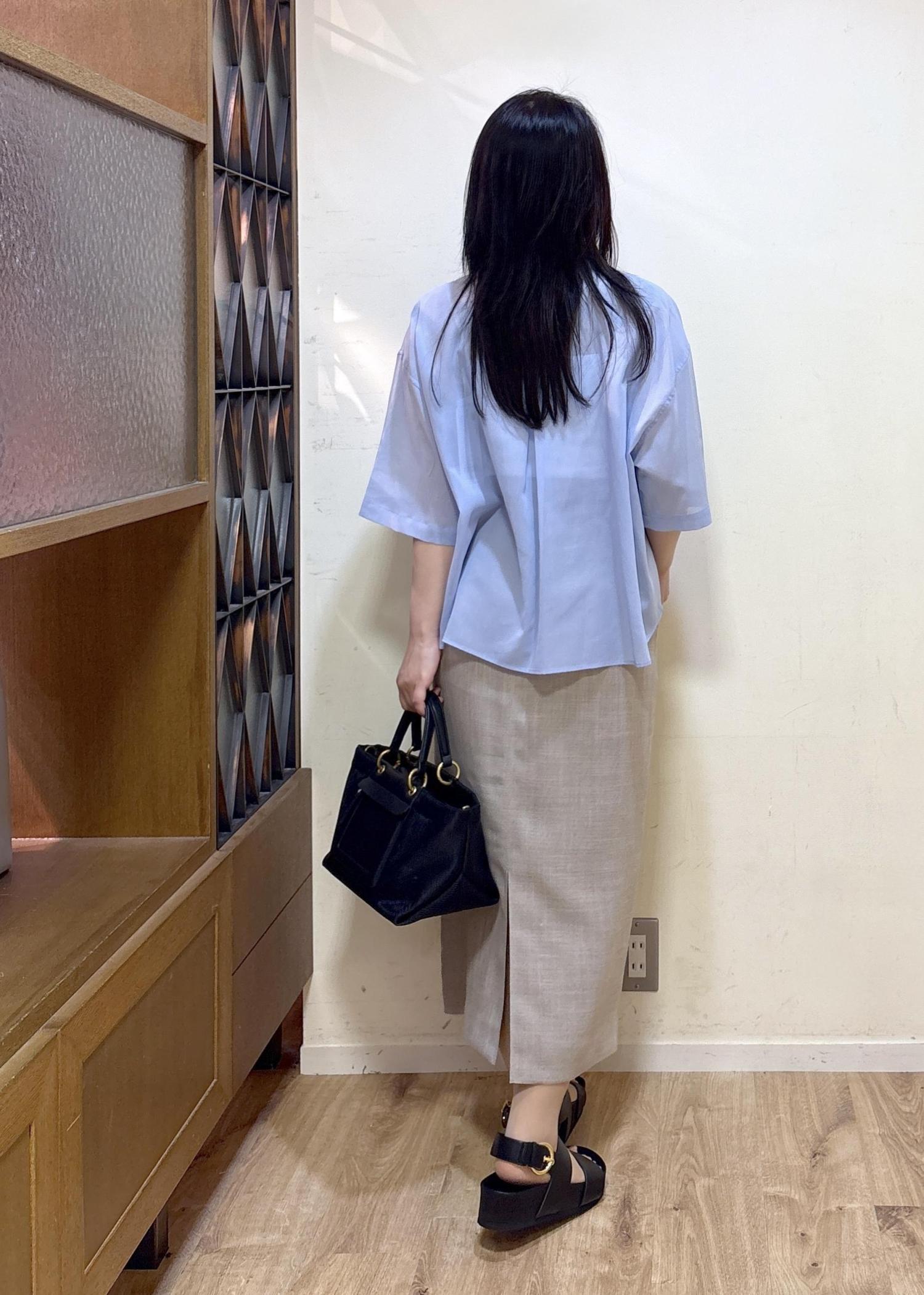着丈がコンパクトなので小柄な方でもボトムとのバランスが取りやすくスタイルアップできる嬉しいシャツです♪