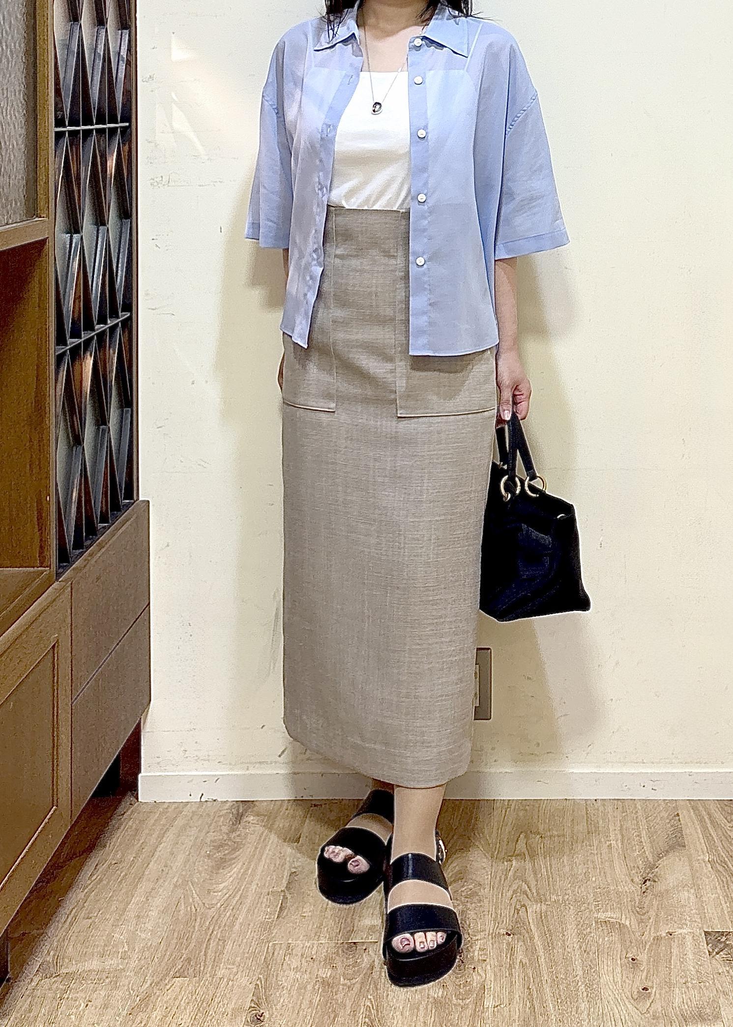 ROPÉリネンライク ポケット付きタイトスカート/イージーケアベージュ / 36¥20,900レビュー身長152cm 36サイズ着用