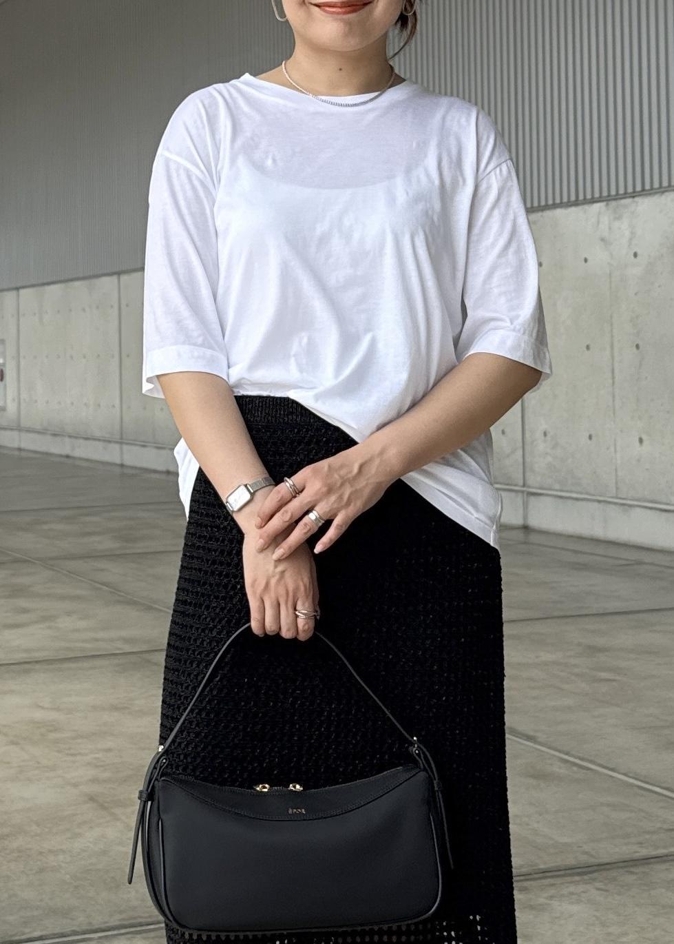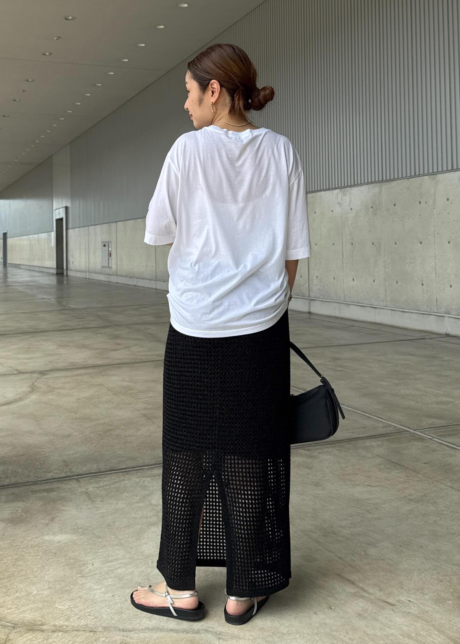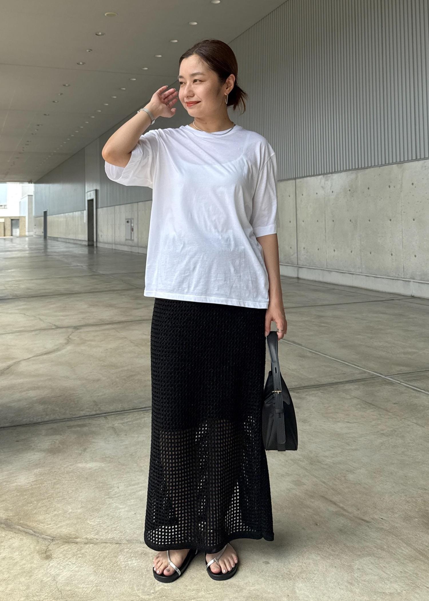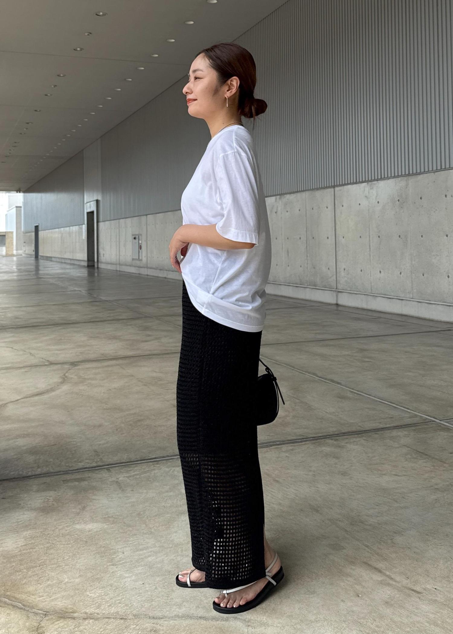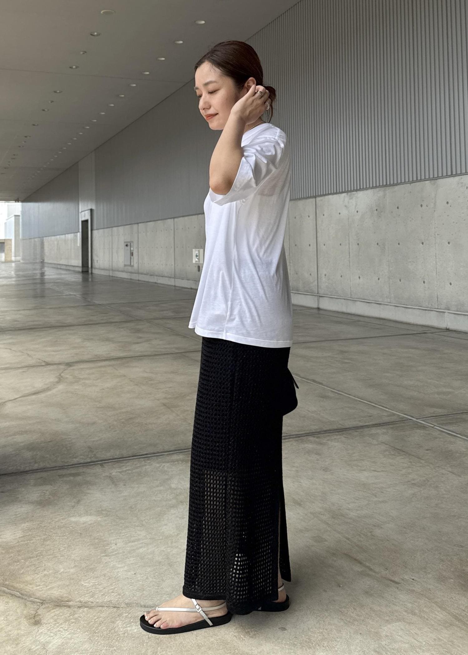着丈は長めで、身幅もゆったりとリラックス感のあるサイズ感なので、体のラインを拾わずノンストレスで暑い夏に快適なTシャツです。 -