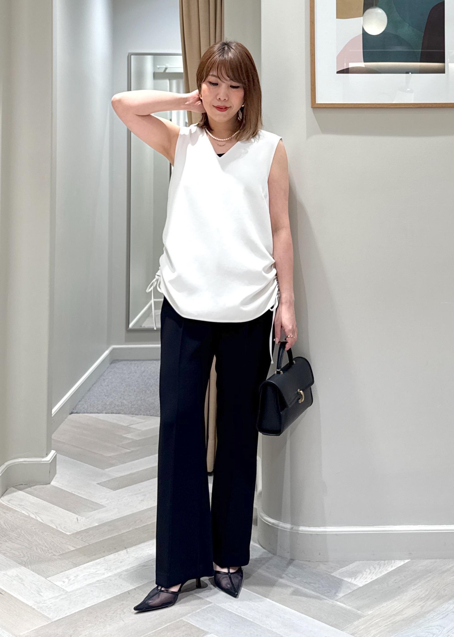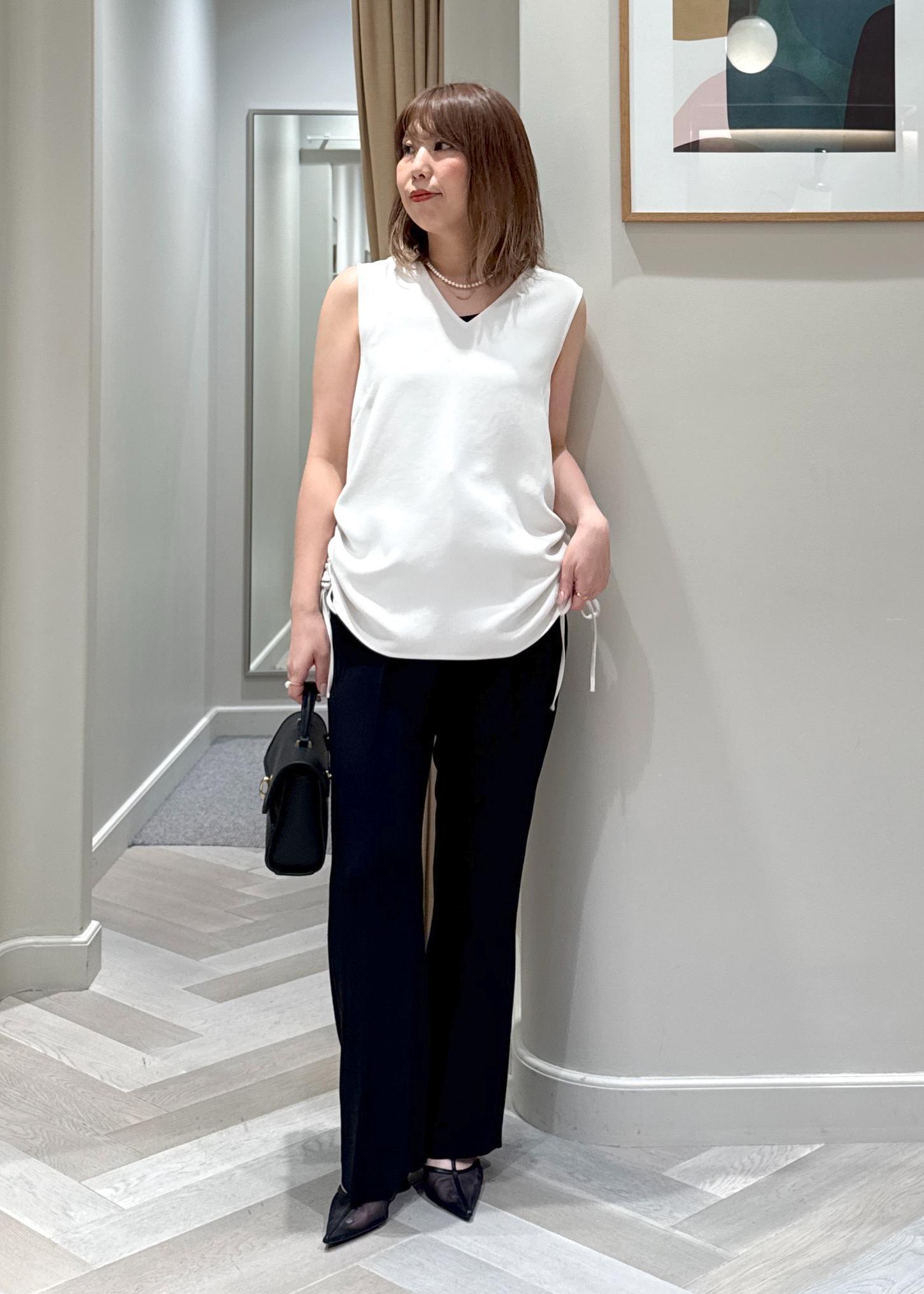 アウトレットROPÉ【WEB・一部店舗限定】バックサテンドロストVネックブラウス/洗えるホワイト / F¥10,780レビューサイズ感は全体的にゆったりめです。