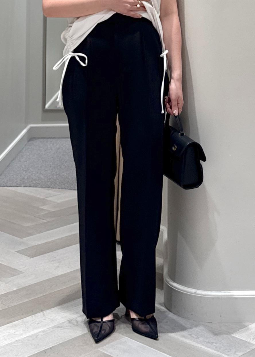 アウトレットROPÉ【WEB・一部店舗限定】バックサテンセミフレアパンツ/洗えるブラック / 38¥13,860レビューウエストは後ろがゴム仕様で楽な履き心地。