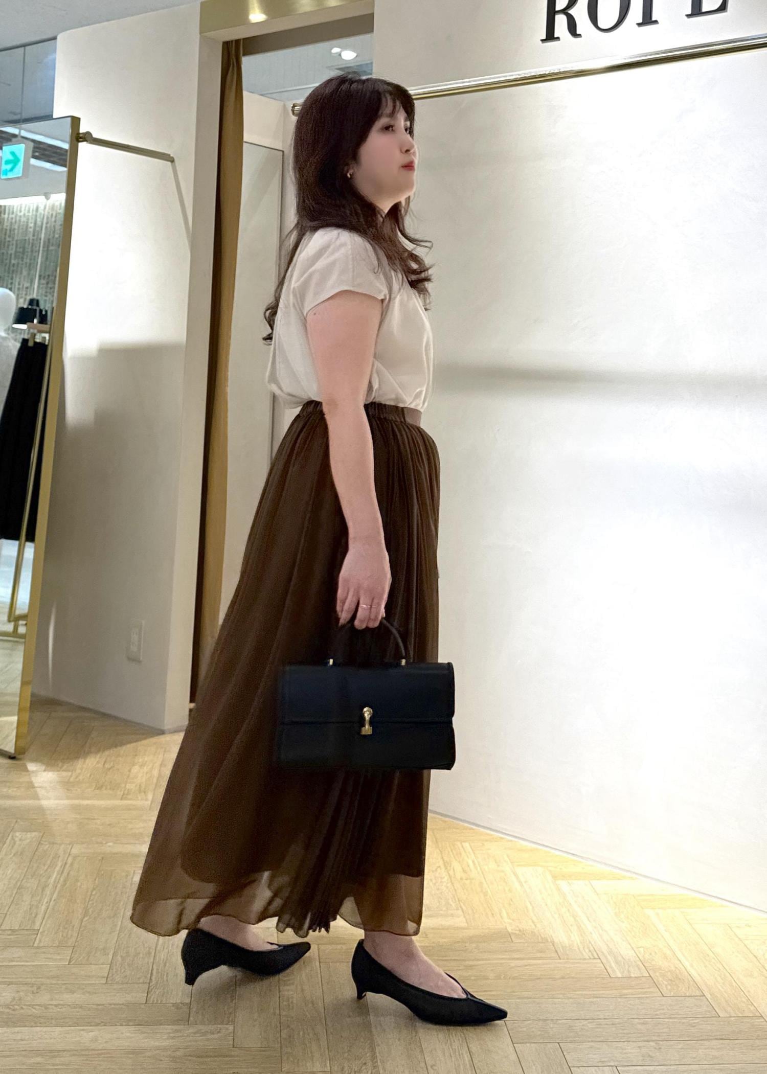 フェミニンなアイテム合わせなので小物はブラックで大人感をプラスしました。