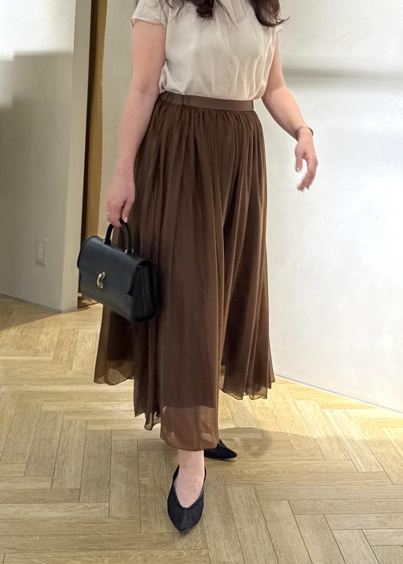 セットアップで着用するとお食事など少し華やかさが欲しいお出かけにオススメのスタイルに。