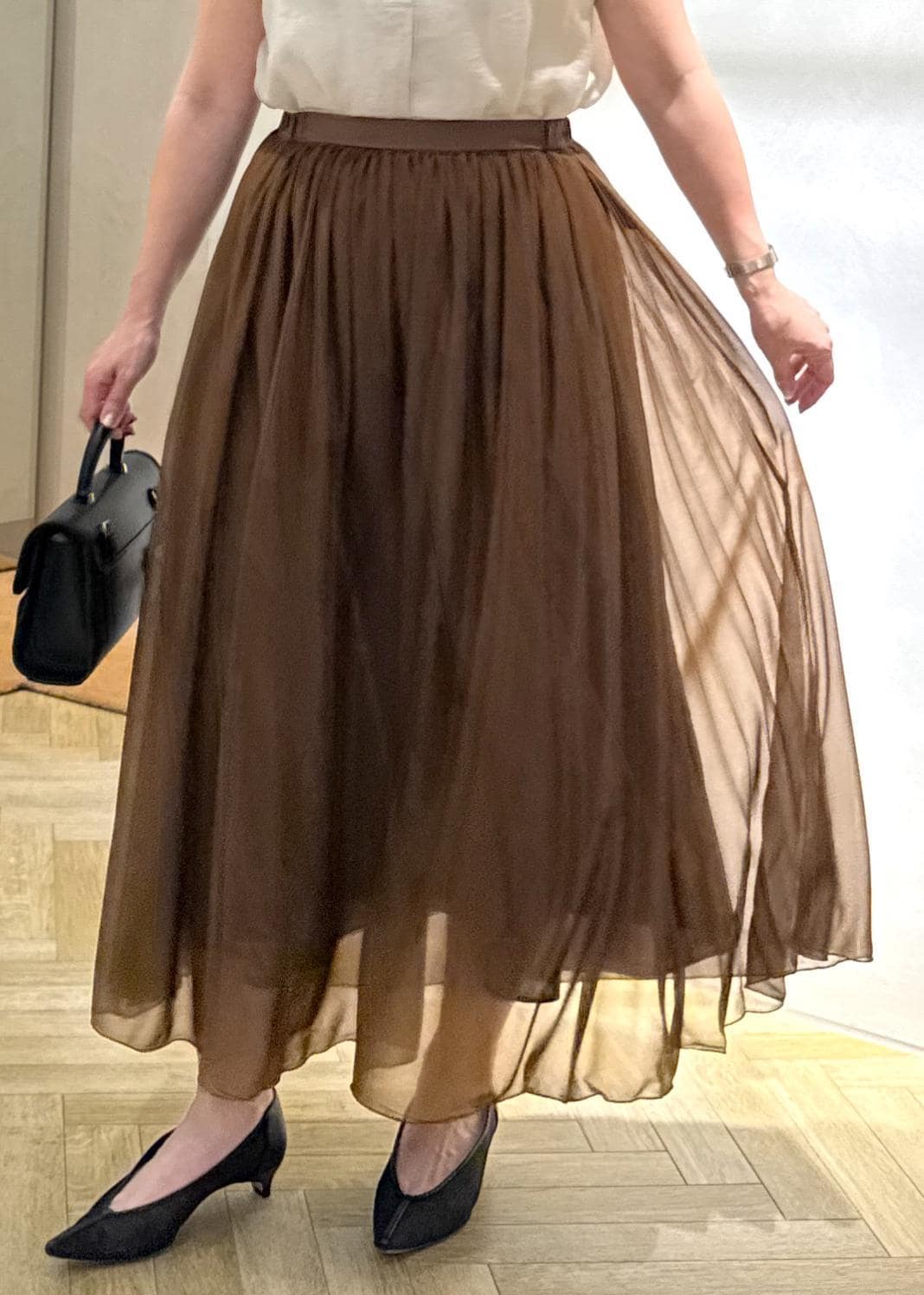 店頭では気になりませんでしたが薄い素材なので太陽光での透けが気になるかもしれません。その場合はペチコートをオススメします。