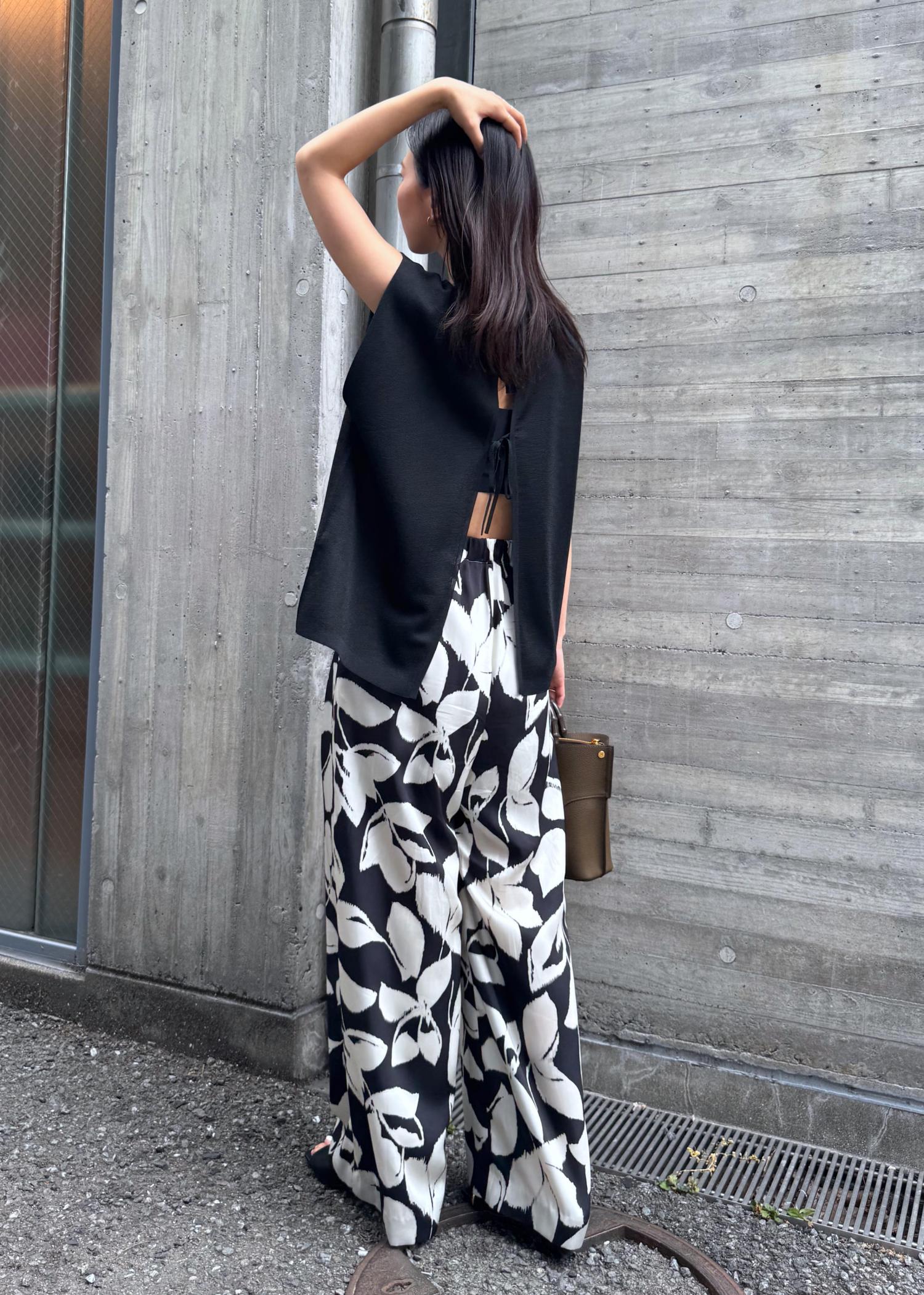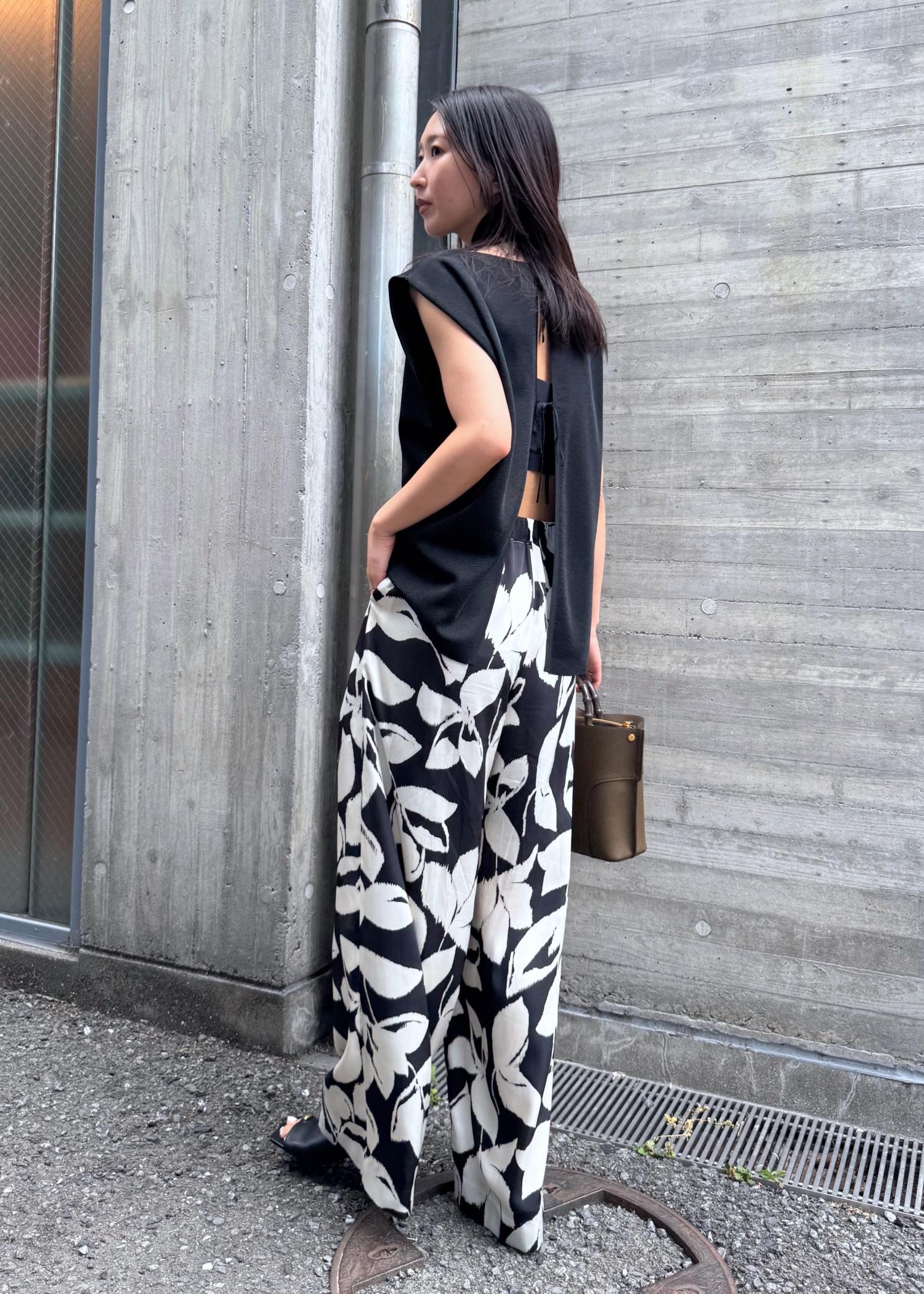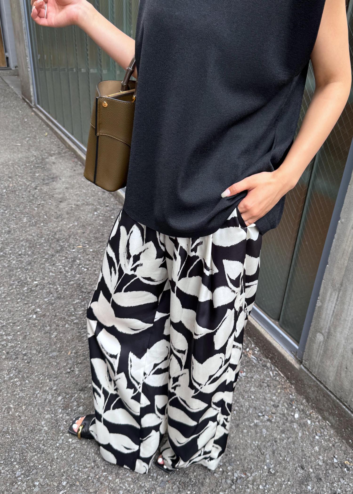 DEVEAUXジオメトリックフラワーイージーワイドパンツ