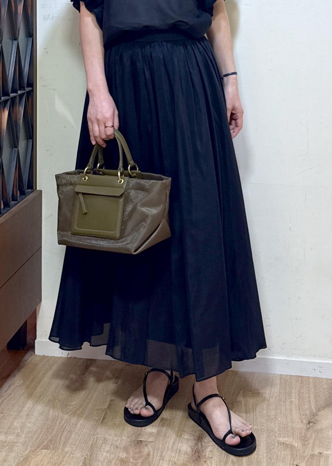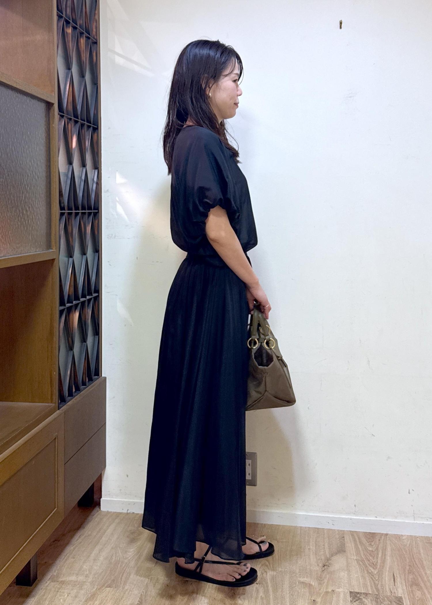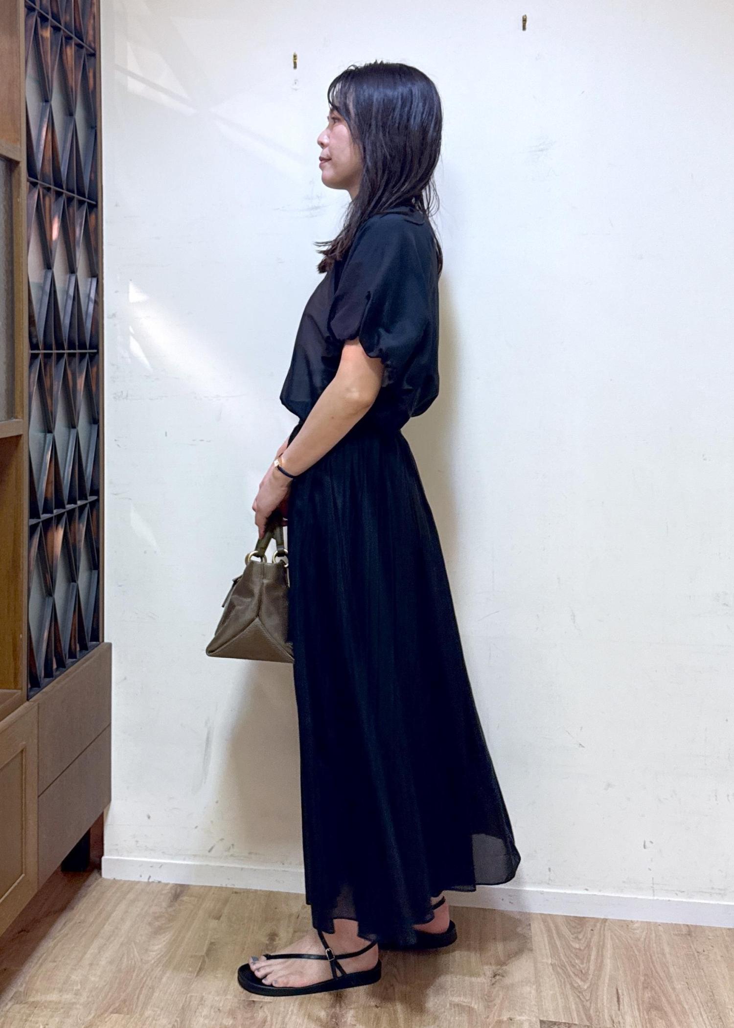 オールブラックですが、シアーな素材で清涼感があるので重たく見えません。