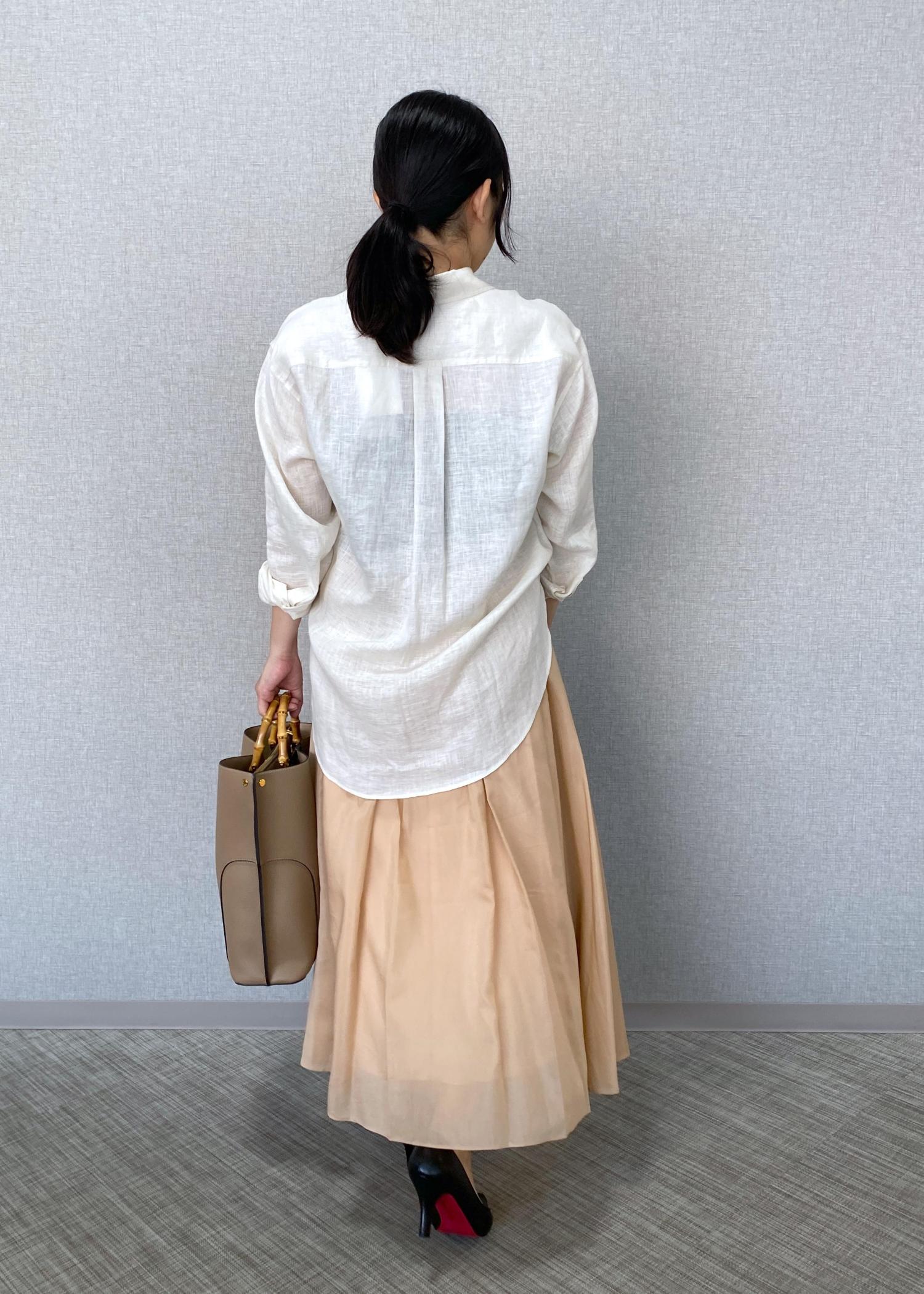 おしりまで隠してくれるゆったりとしたサイズ感のリネンシャツです
