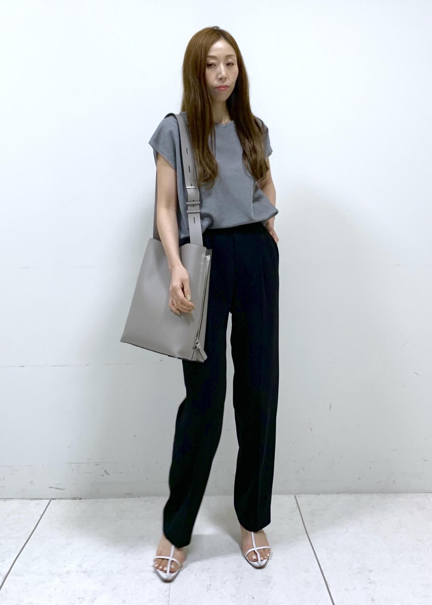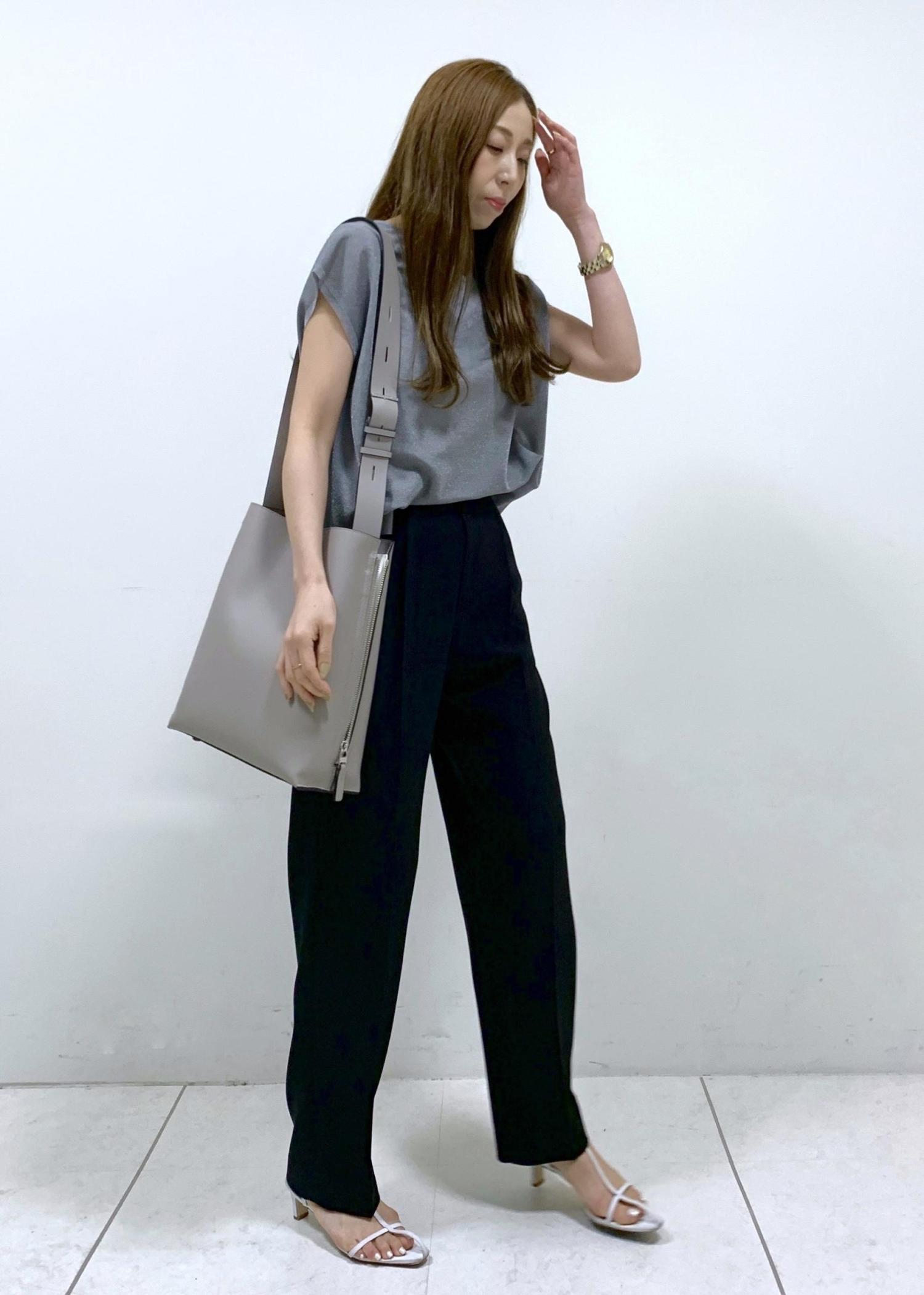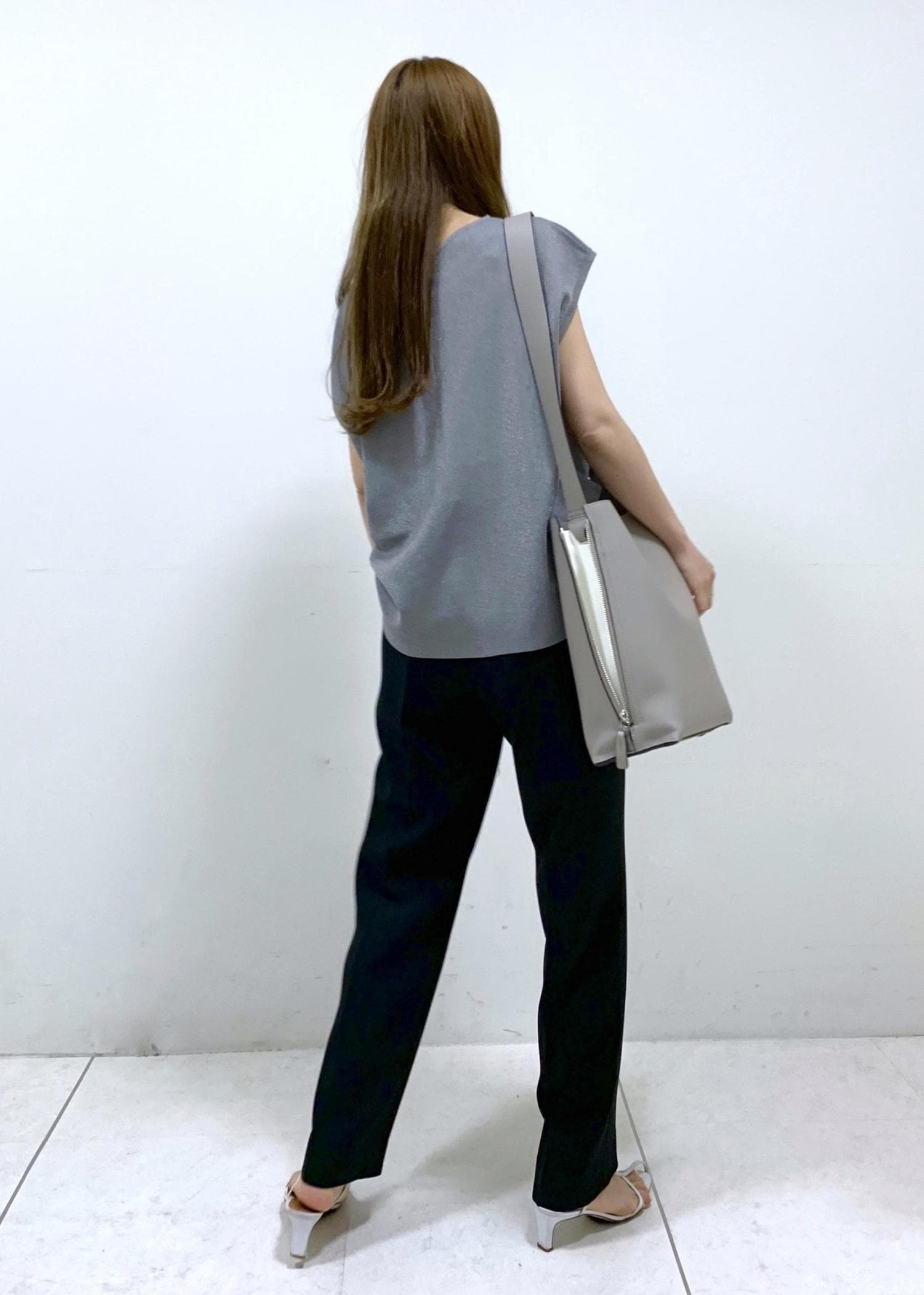 シルバーのラメが涼しげなフレンチプルオーバーに、センタープレスで綺麗な形のテーパードパンツを合わせたお仕事にもお勧めなstyleです。