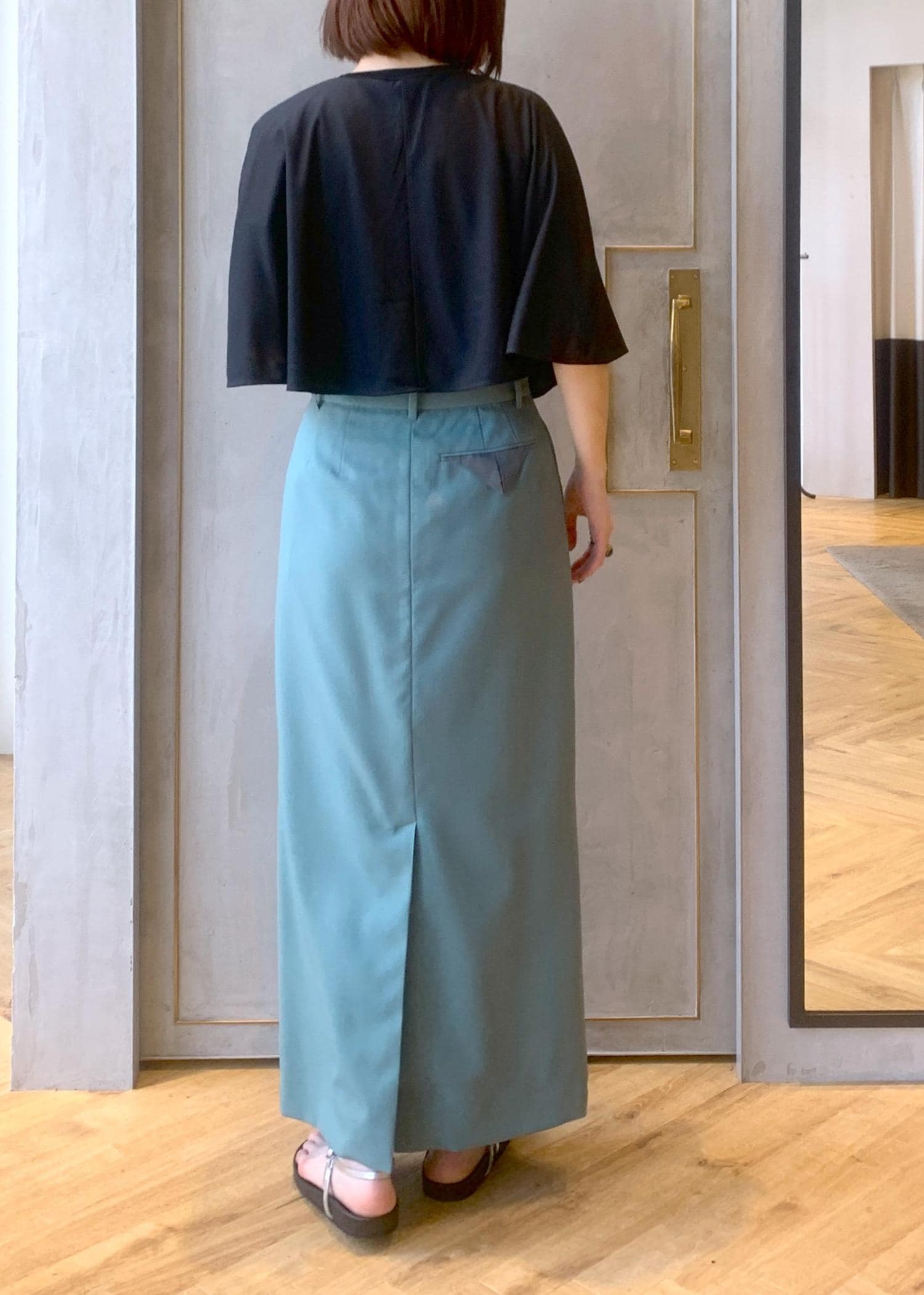 ストレッチ性はないものの、深めのバックスリット入りなので、足さばきはしやすいです。