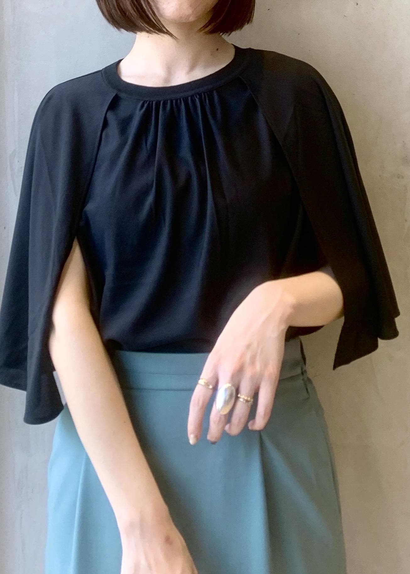 肘も隠しつつ、ケープ部分から風もふわっと入りやすく、涼しく快適に着ていただけます。
