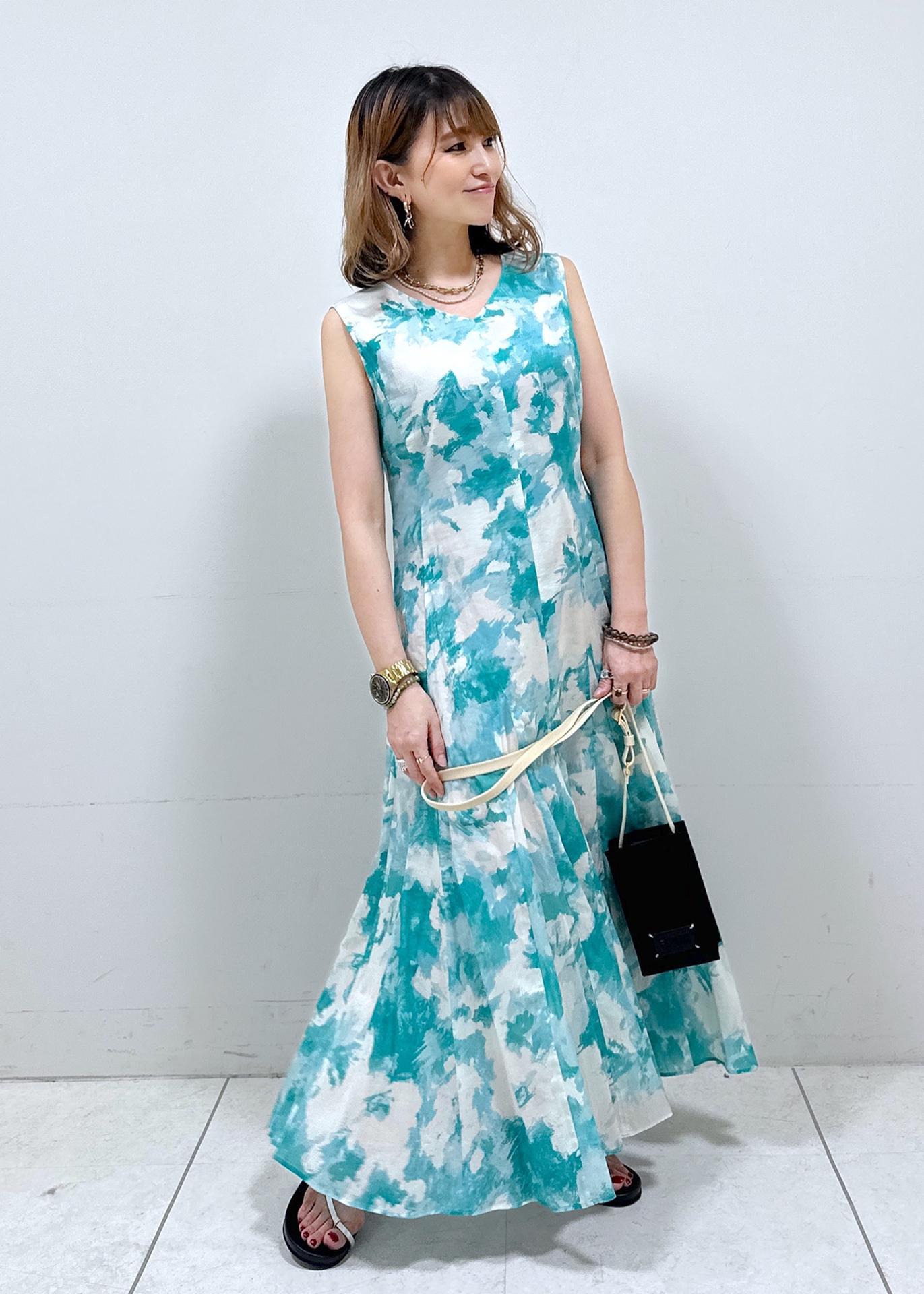 夏らしいワンピースで、スッキリサマーコーデ
