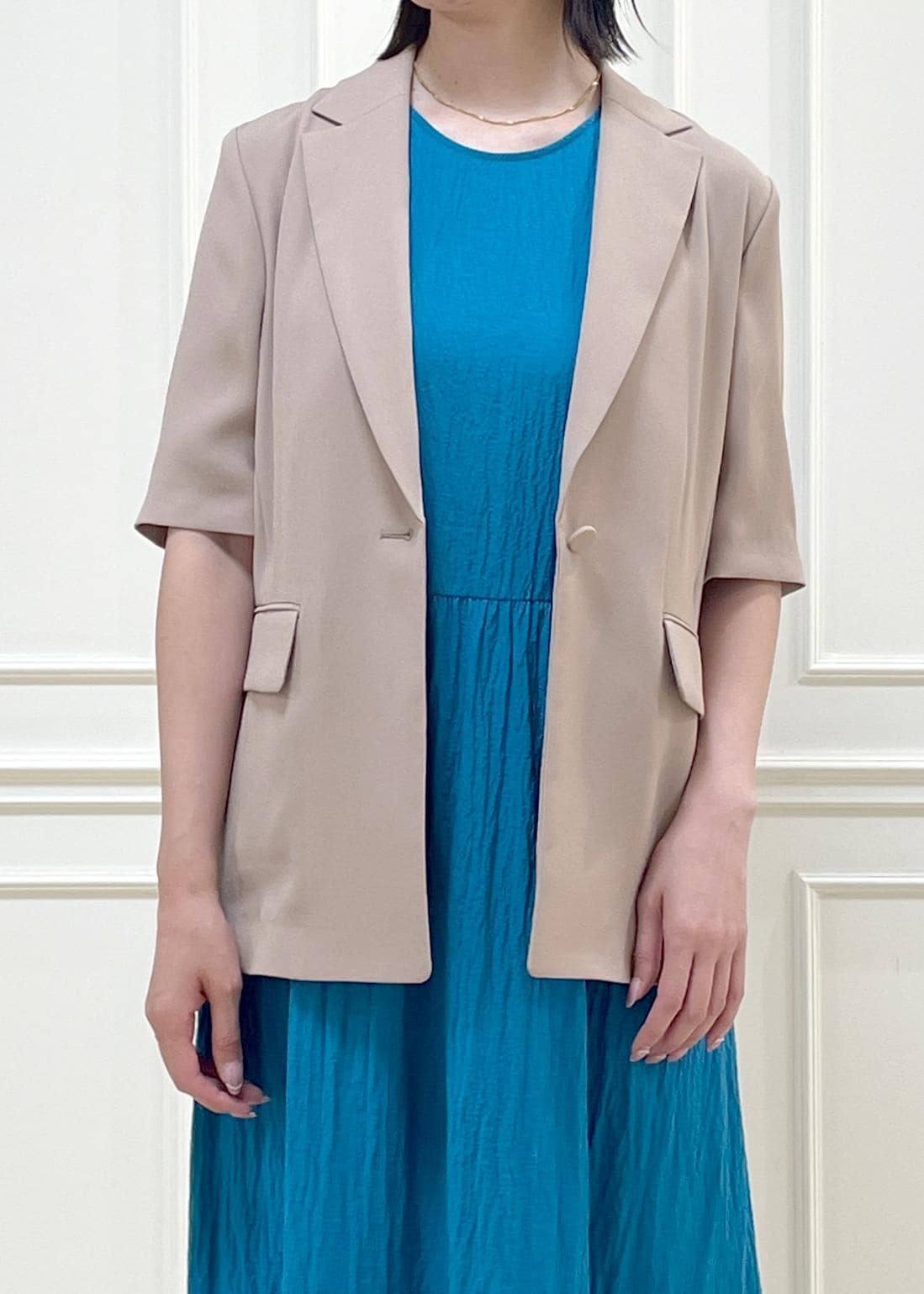 ROPÉ【洗える・カセット服・新色追加】トリアセバックサテン ハーフスリーブジャケット/セットアップ対応ベージュ / 36¥31,900レビュージャケットは、36と38サイズどちらも着用できる体型です。