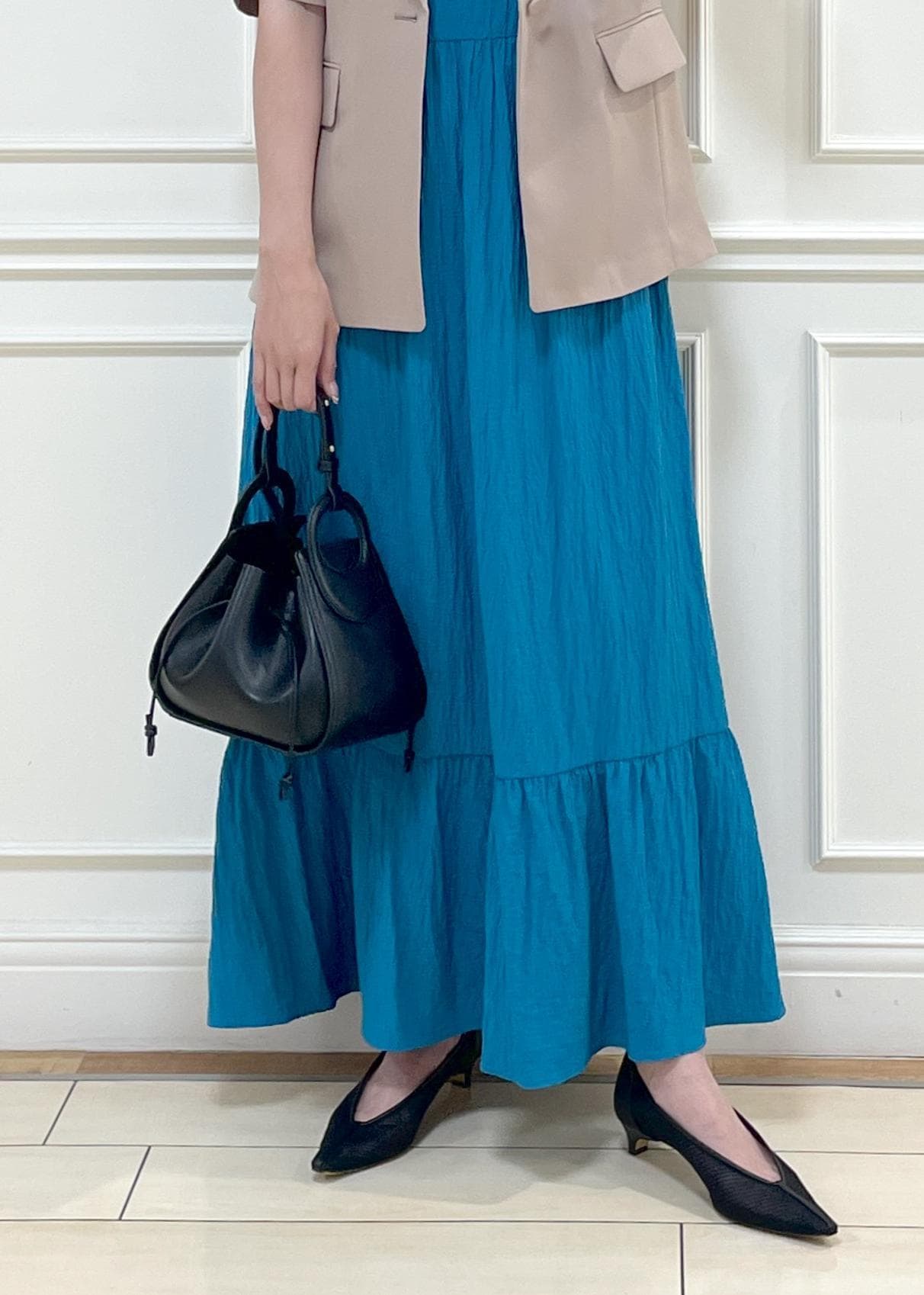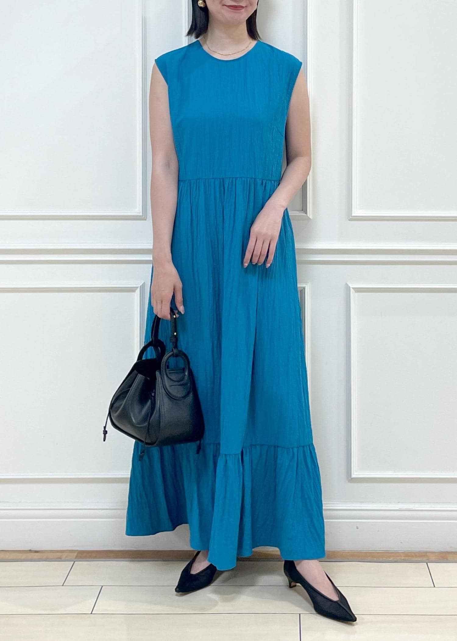 アウトレットROPÉ【WEB・一部店舗限定】バックシャンティアードワンピース/洗えるターコイズ / F¥14,850レビューワンピースは、36・38サイズどちらも着用できる体型です。