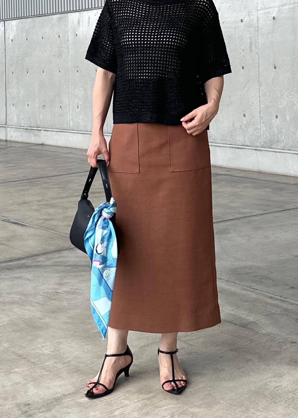 ROPÉリネンライク ポケット付きタイトスカート/イージーケアブラウン / 36¥20,900レビュー身長156cm、36サイズ着用。