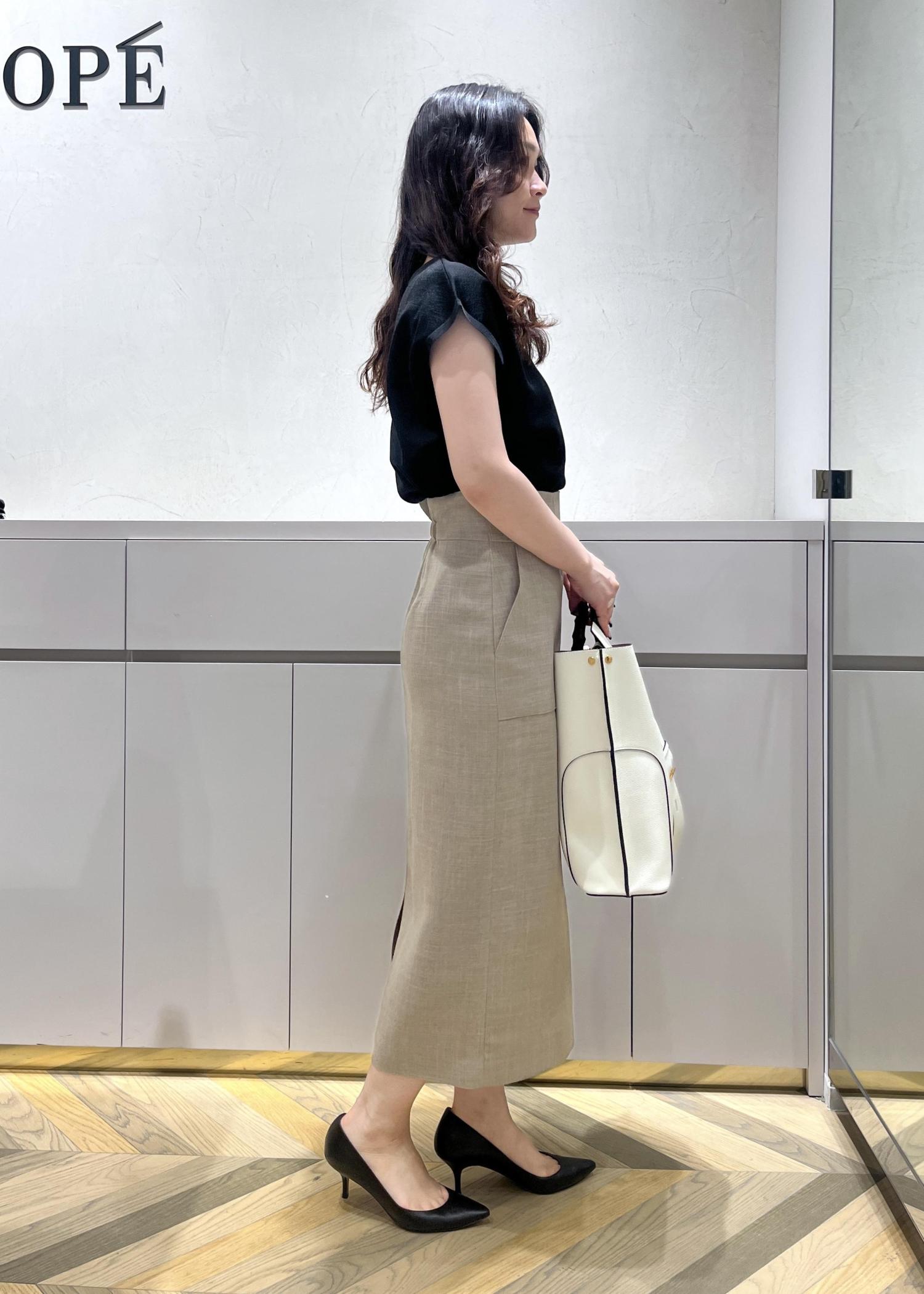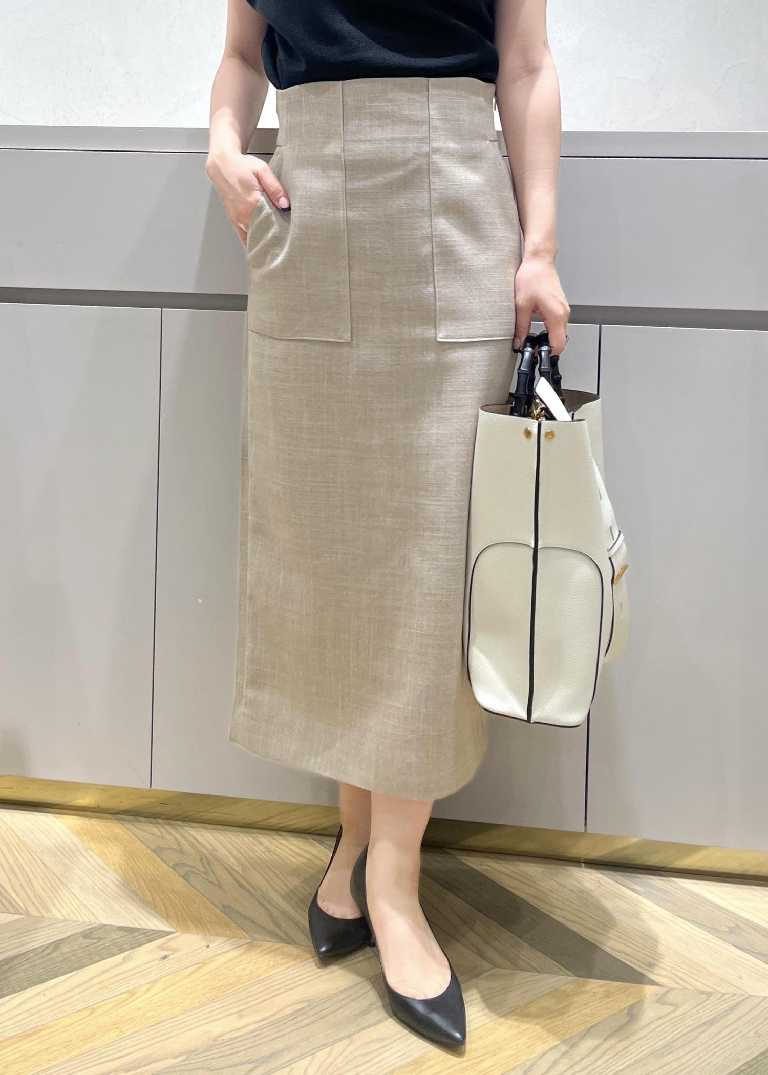 ROPÉリネンライク ポケット付きタイトスカート/イージーケアベージュ / 36¥20,900レビュー定番人気のタイトスカートに、シワになりにくい素材が登場しました!