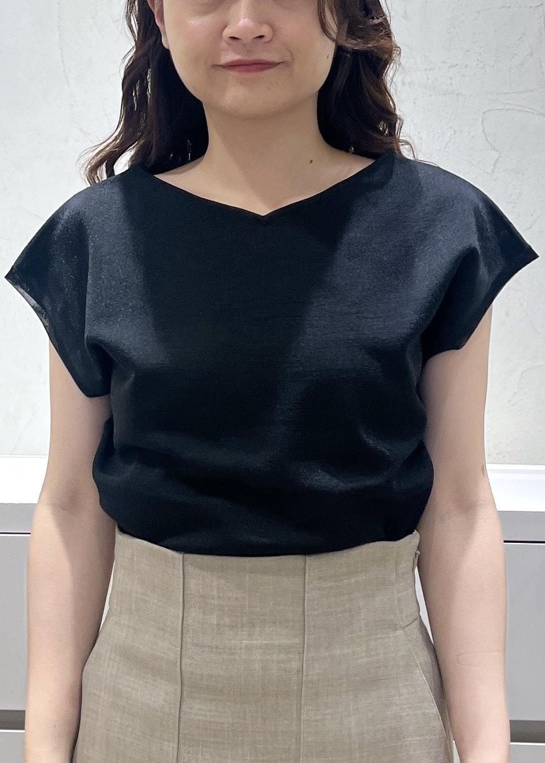アウトレットROPÉ【洗える】シャイニーフレンチスリーブプルオーバーブラック / F¥8,250レビューフリーサイズです。身幅にゆとりのあるシルエット。浅めのVネックとフレンチスリーブで肩周りはスッキリ見えします。