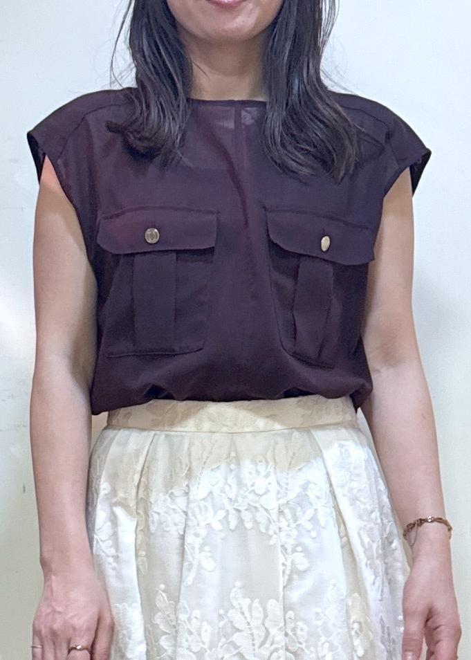 アウトレットROPÉ【洗える】サファリ シアーブラウスブラウン / F¥12,650レビュー163センチ Fサイズ着用