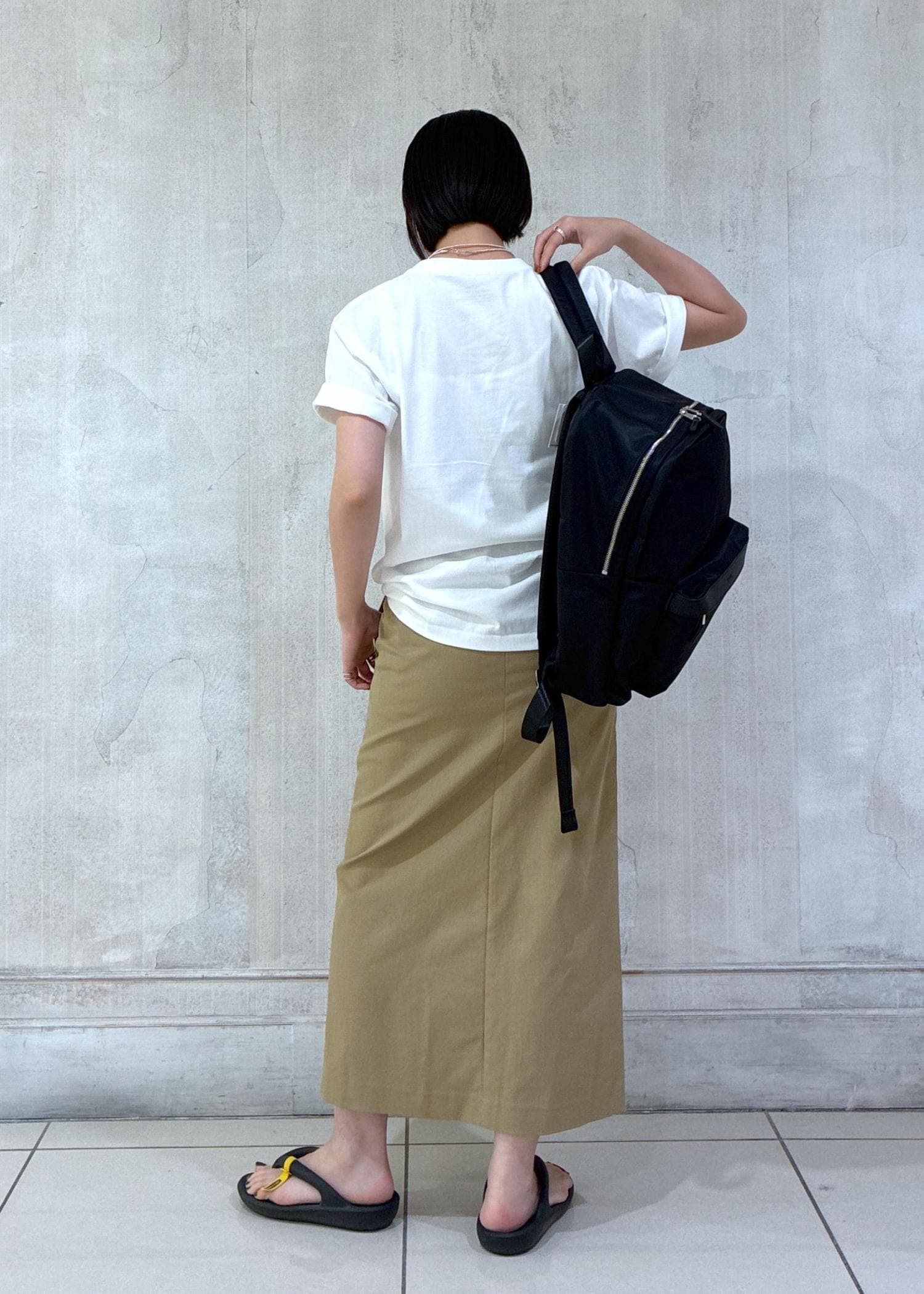 後ろゴムなのでとても楽なのと、腰回りのフィット感はありますが体のラインを拾いすぎずヒップから下はゆとりがありラインも響きませんでした。 -
