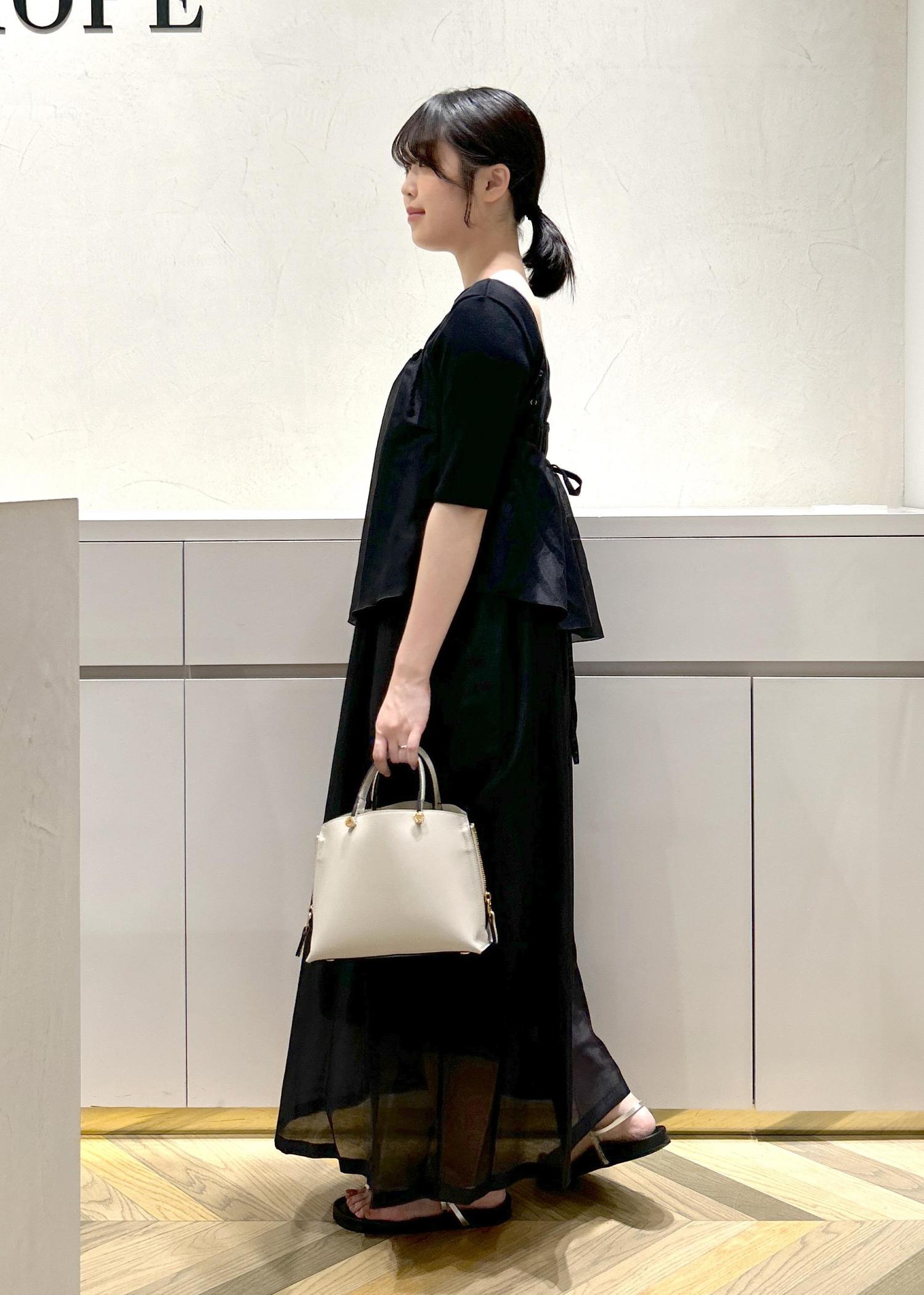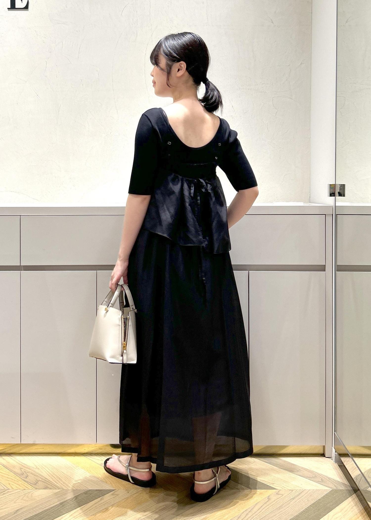 アウトレットROPÉコットンシルクワンピース/洗えるブラック / F¥17,600レビュー丈は足首が見えるくらいで長すぎないです。ふんわりとした広がりがあるので、ラインを拾わず着ていただけます。ペチスカートが付いていて膝下くらいまでの長さです。