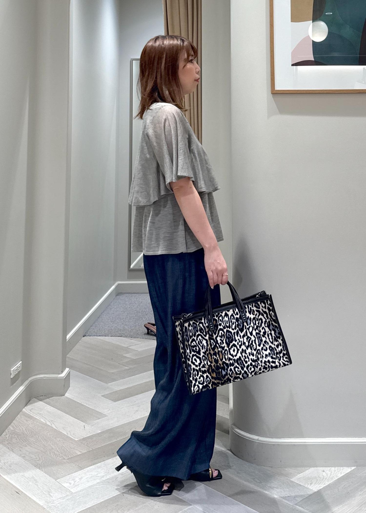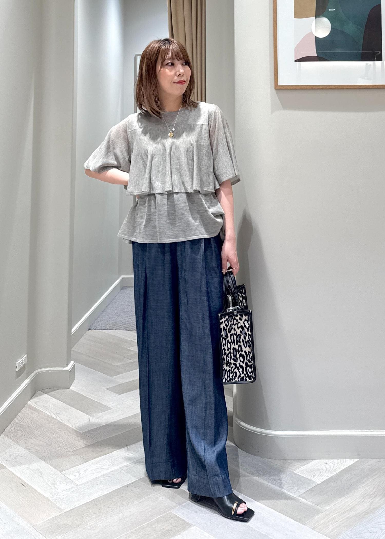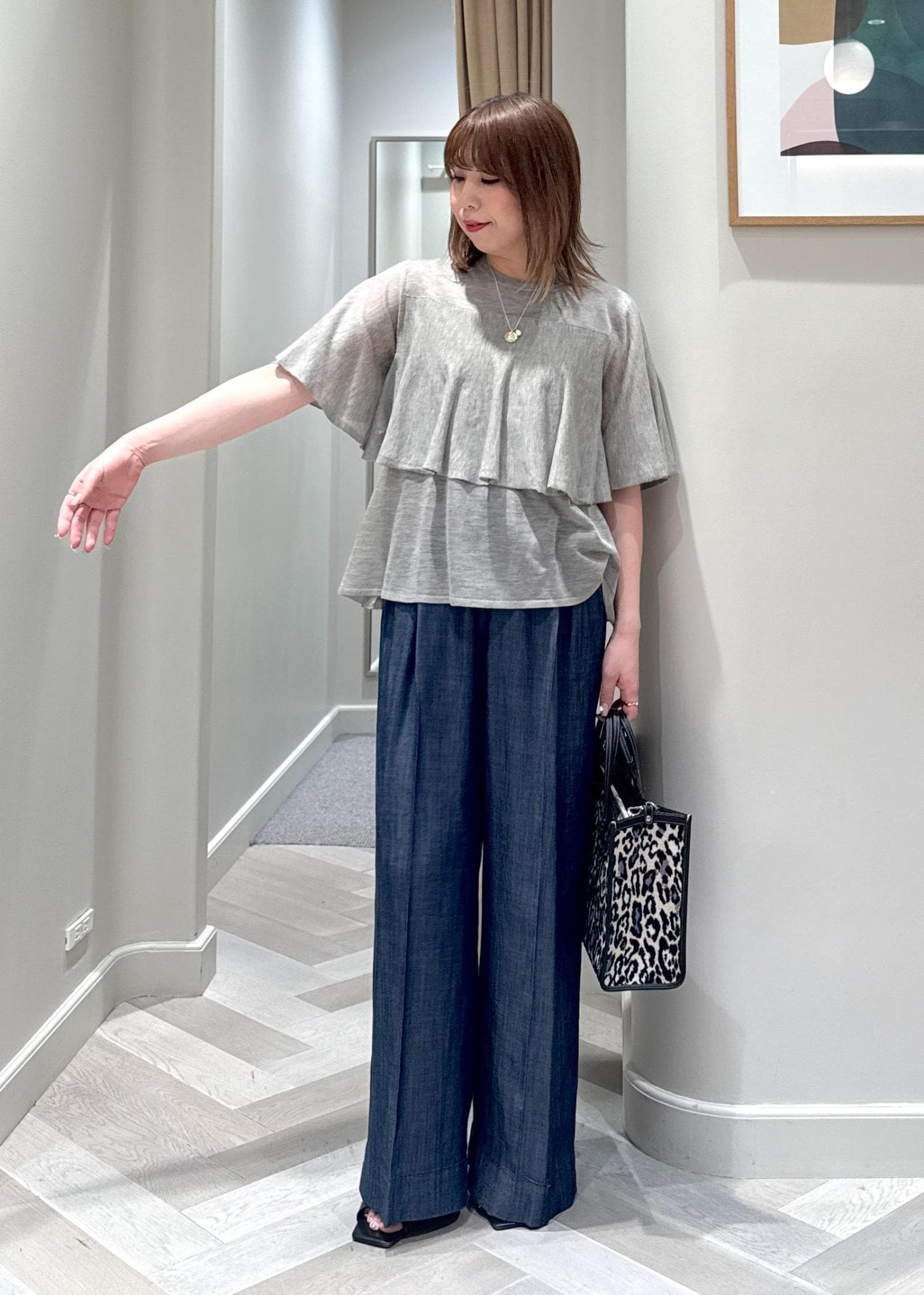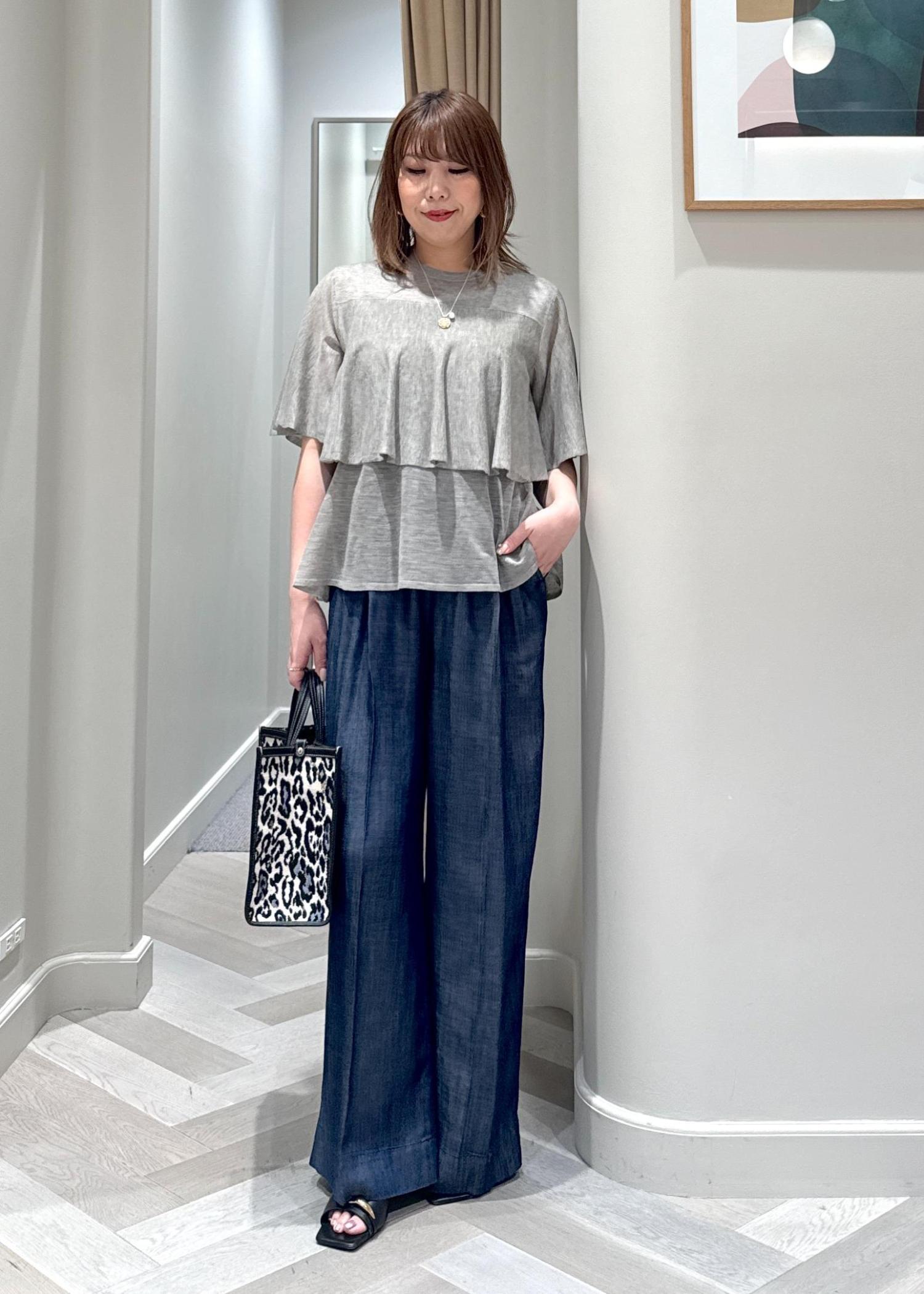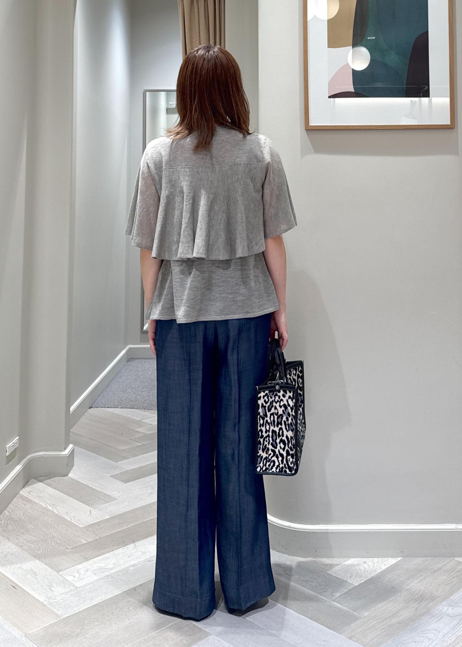落ち感のあるこちらのパンツだときれい目にも合わせやすくて