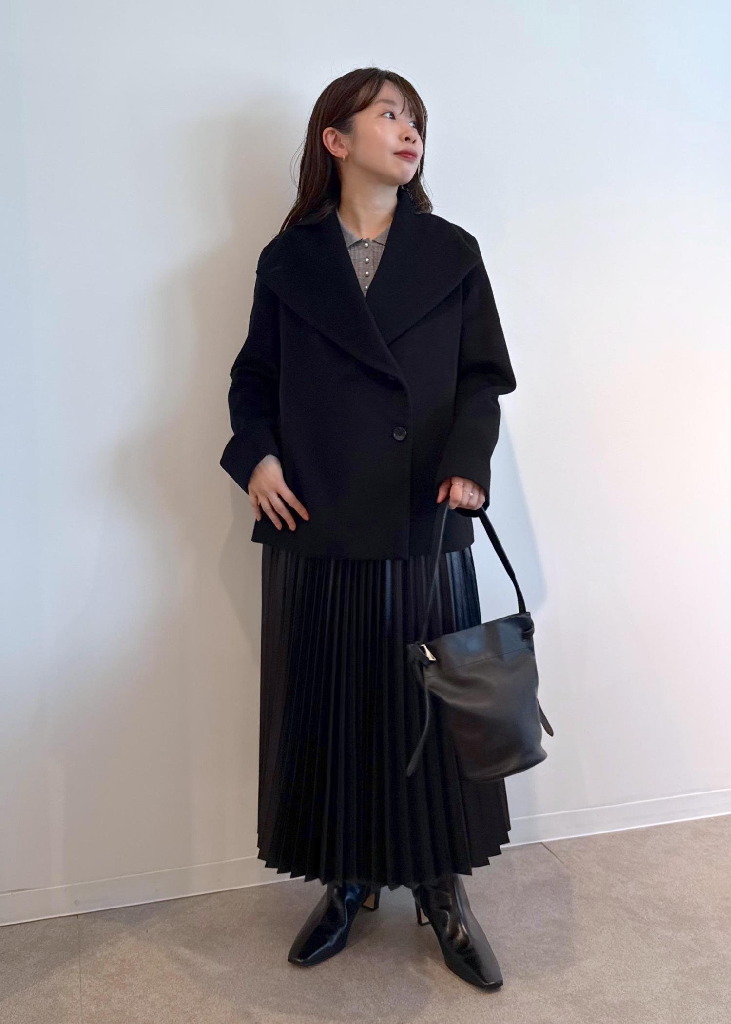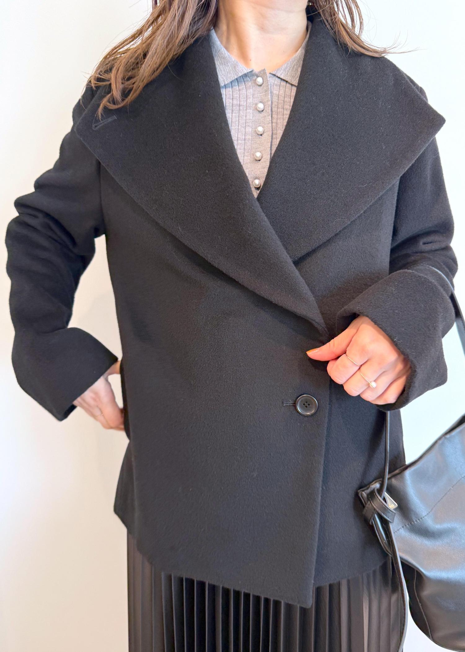 NEW!ROPÉプレミアムカシミヤ ショートコート【25AW】ブラック / 36¥53,900レビューアームホールも身幅もややゆとりがあり、地厚なニットも着れそうです。