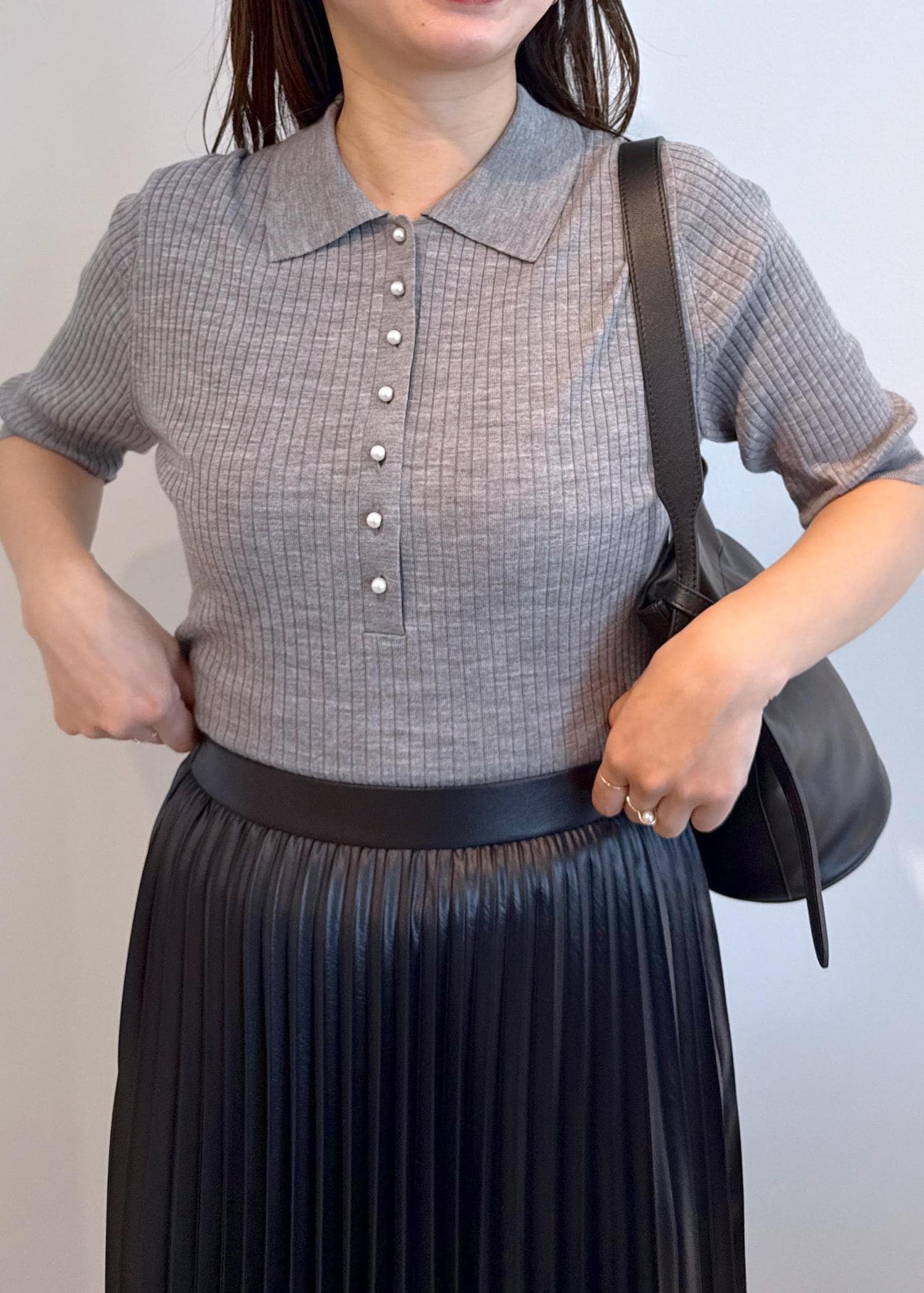 ROPÉパール釦ポロニット/イージーケアグレー / F¥19,800レビューリブが細すぎないので、身体のラインが出過ぎずにすっきり着れます♪