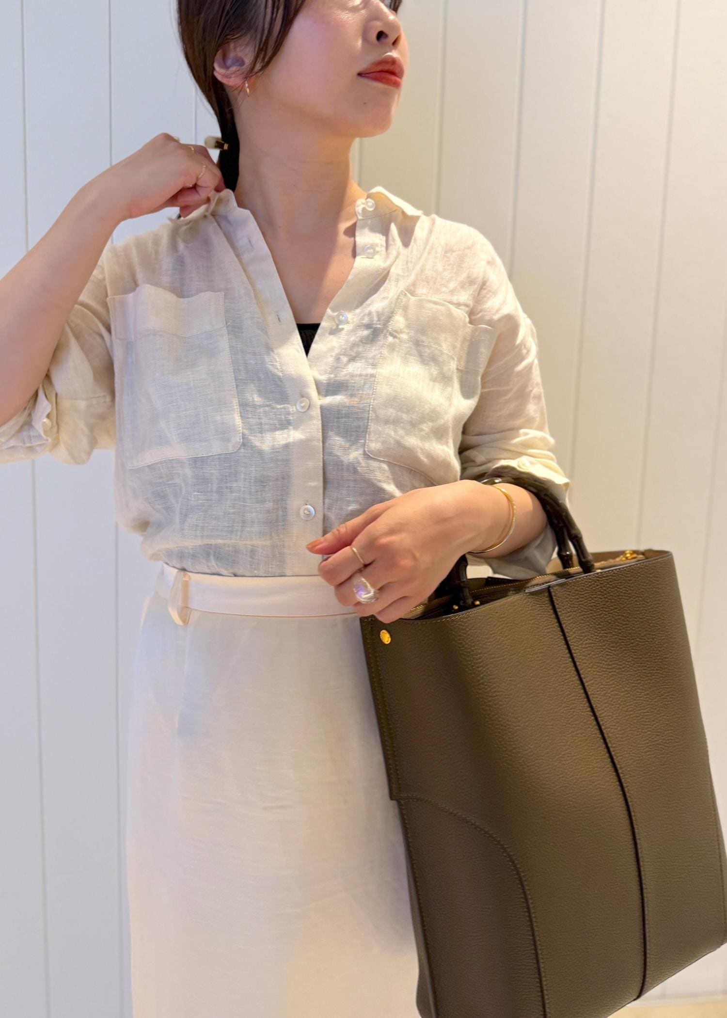 ROPÉ【E'POR】BAMBOO BAG Large【通勤】【A4対応】【25AW】カーキ / F¥19,800レビューA4サイズがすっぽり入る大きさです。
