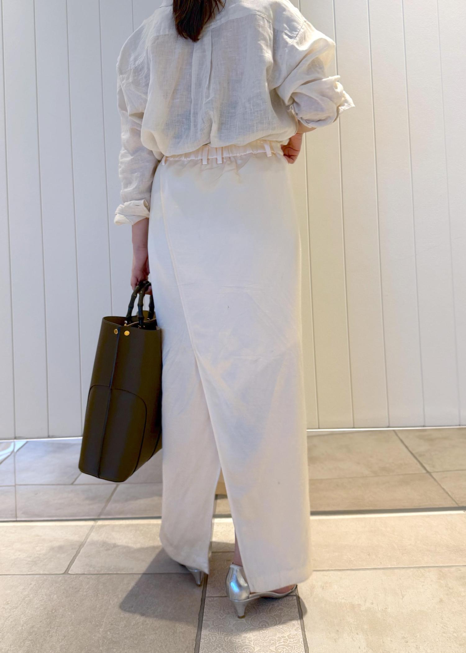 アウトレットROPÉアセテートリネンバッククロススカート/洗えるオフホワイト / 38¥11,550レビュー長めの着丈で着たかったので38サイズにしました。