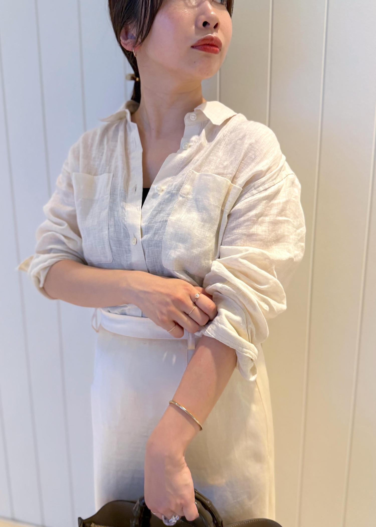 ROPÉヨーロピアンリネンレギュラーシャツ/イージーケアオフホワイト / F¥25,300レビュー身幅はややゆとりがあり、ほんのり抜け感はありますが、ルーズ過ぎず品よく見えるサイズ感です。