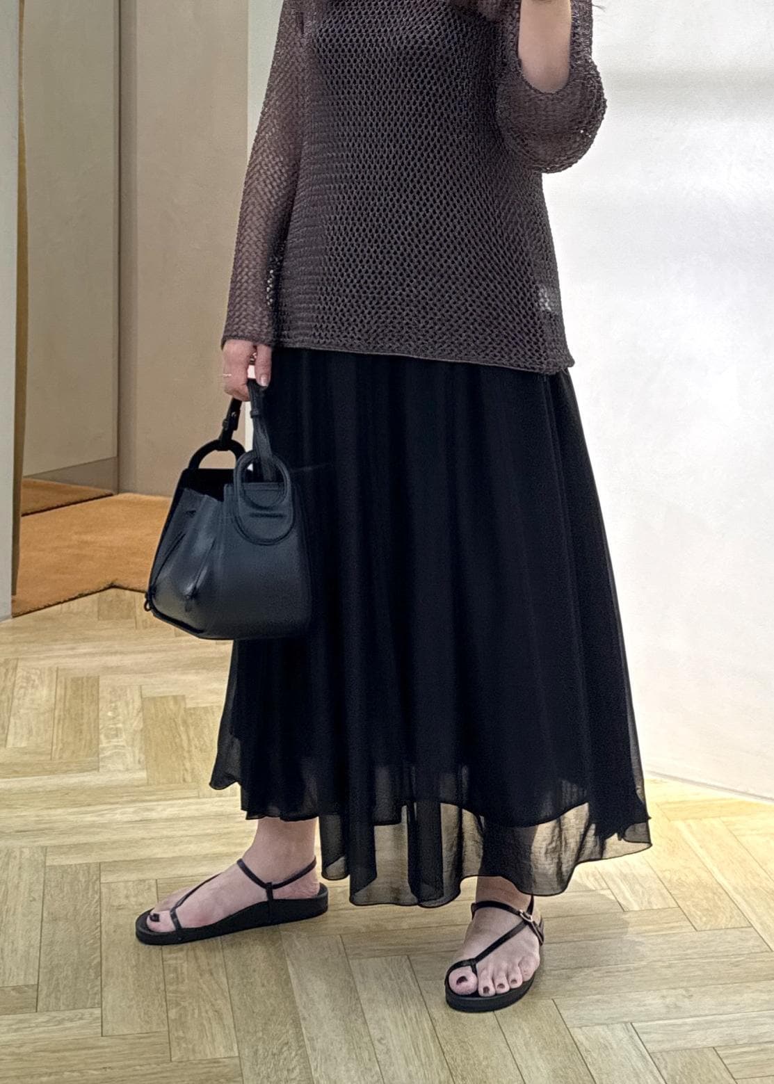 店頭では気になりませんでしたが薄い素材なので太陽光での透けが気になるかもしれません。その場合はペチコートをオススメします。