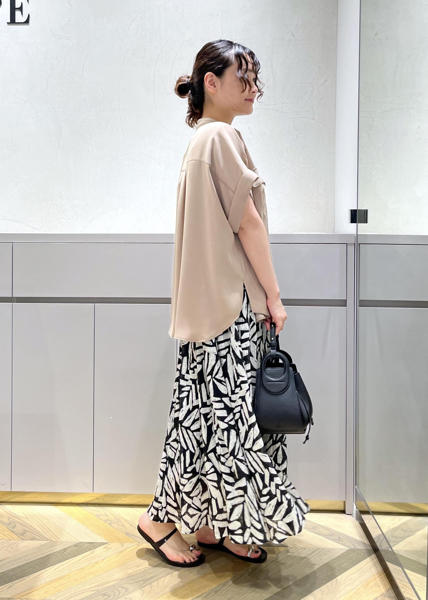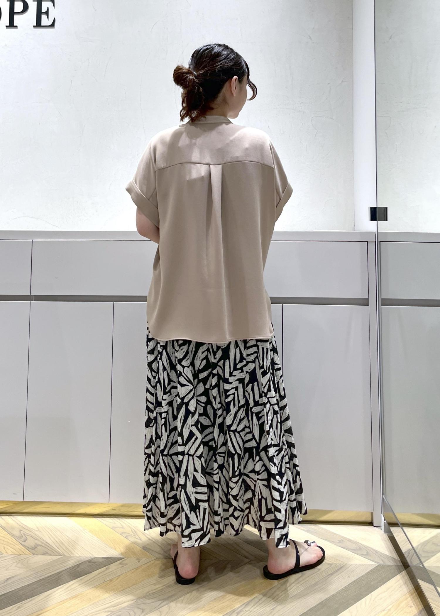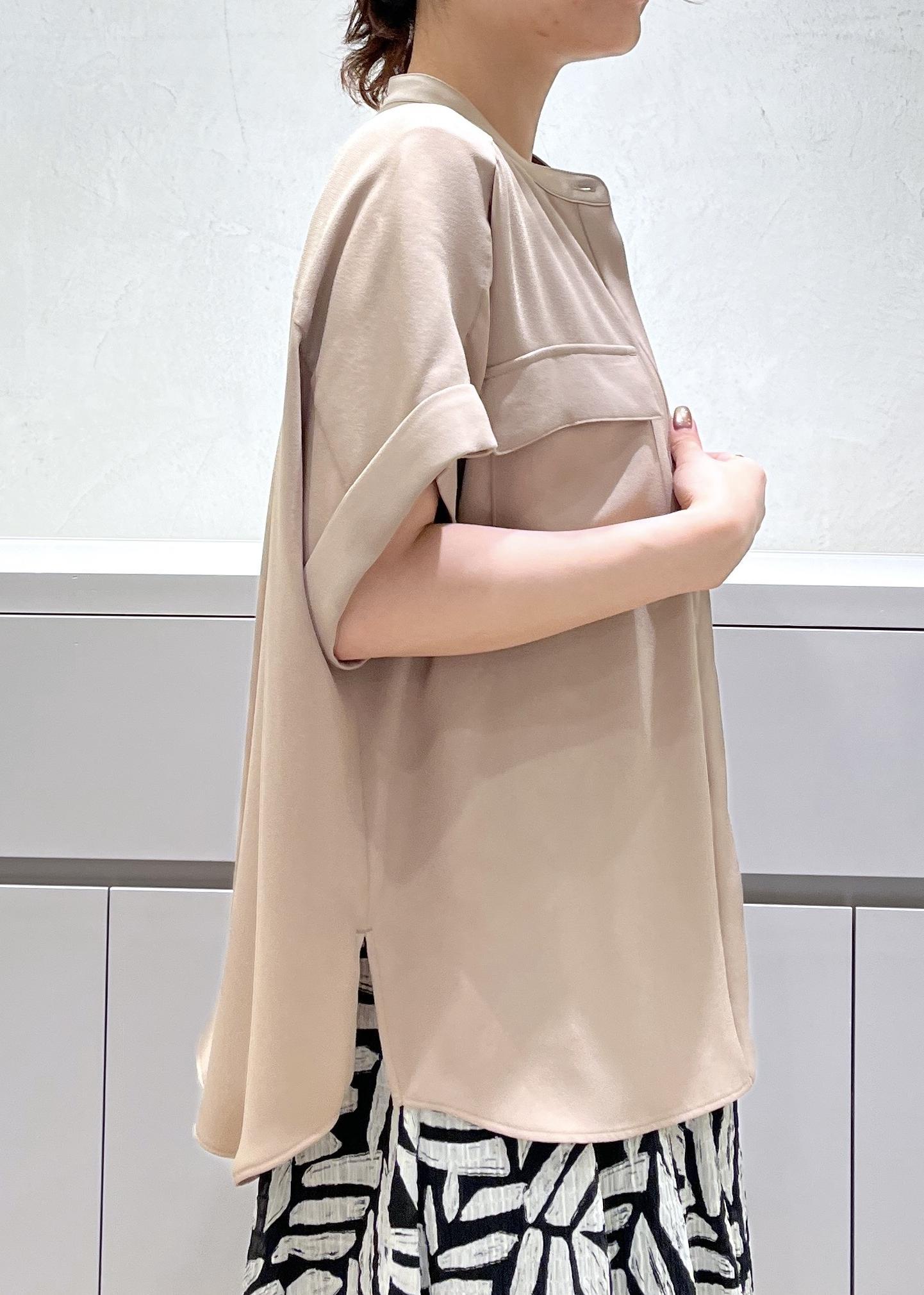 薄手ですが透けないのと、手洗いできてシワにもなりにくい万能素材。程よくきちんと感のあるデザインが真夏のお仕事シーンでも活躍します◎ -