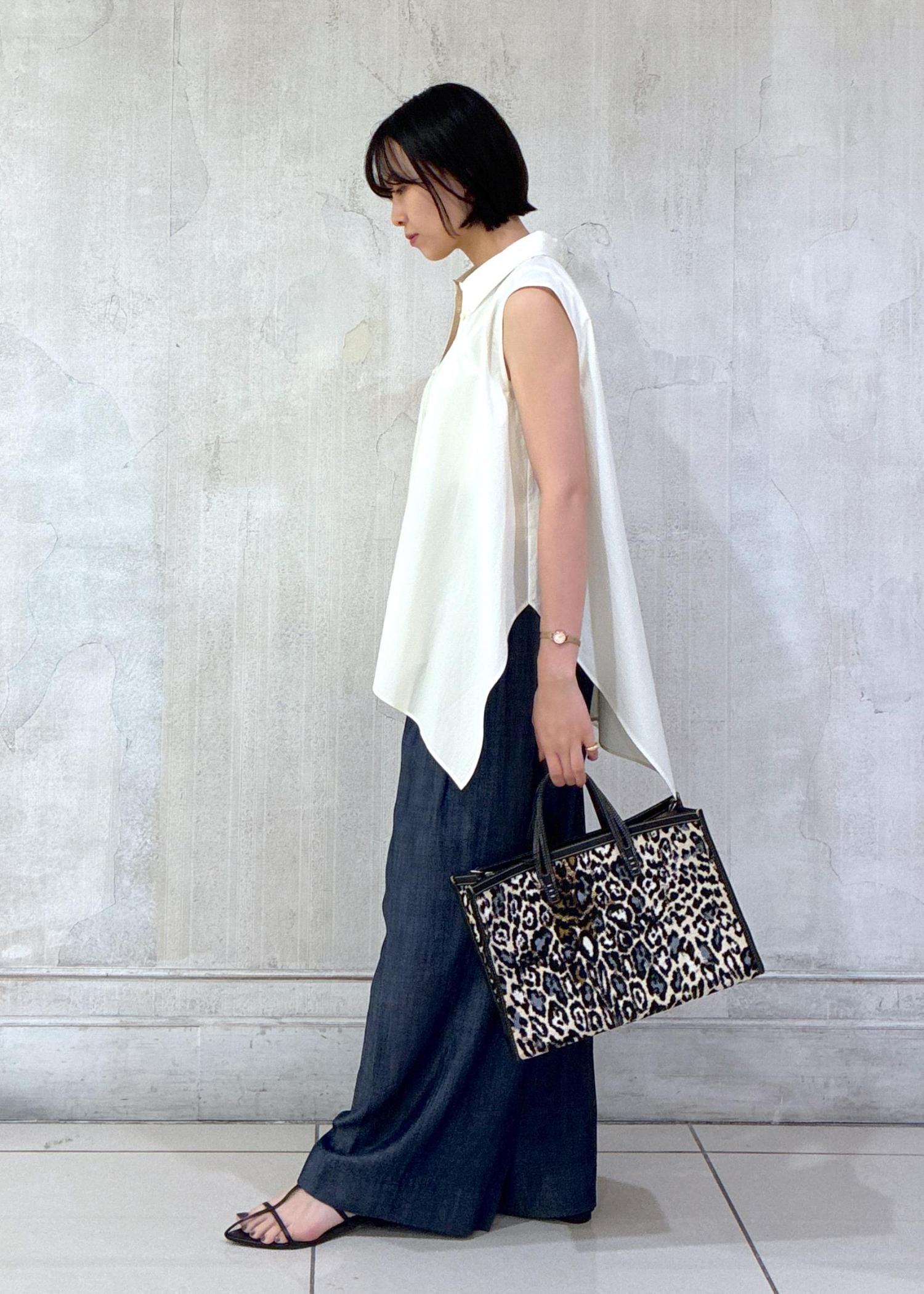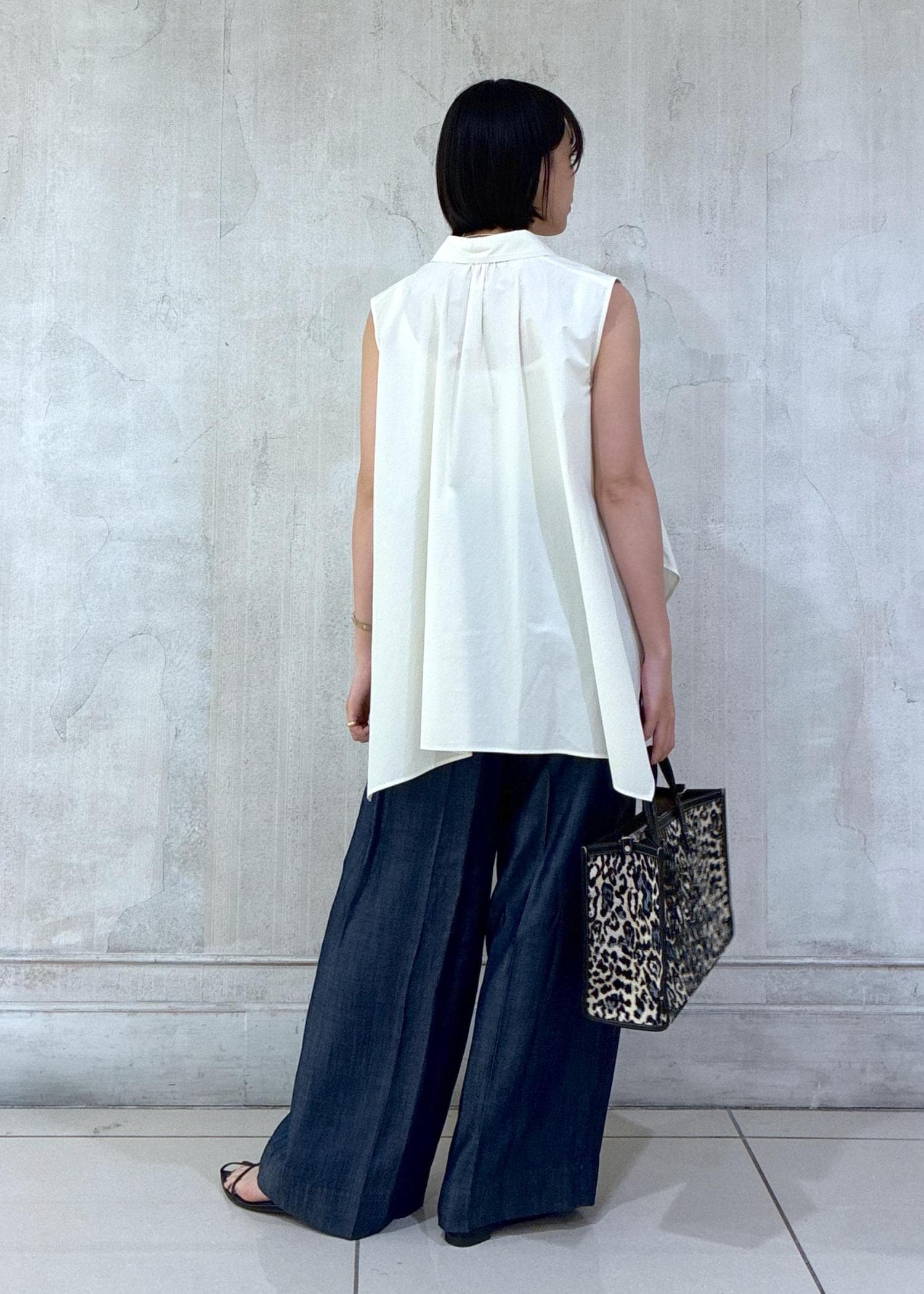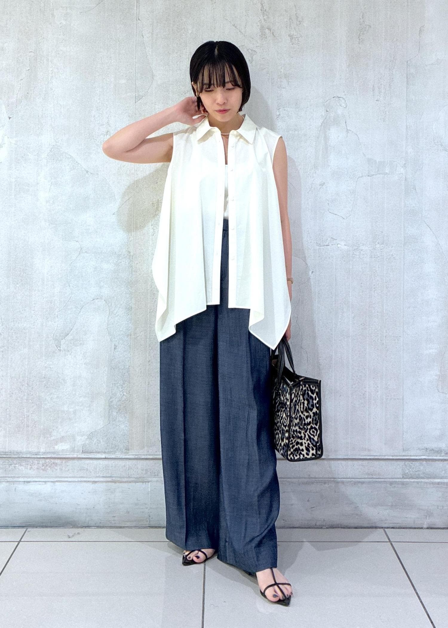 SALON adam et ropé近江晒タイプライターノースリーブシャツオフホワイト / F¥7,920レビュードラマチックに広がるドレープ感が特徴のノースリーブブラウスです。
