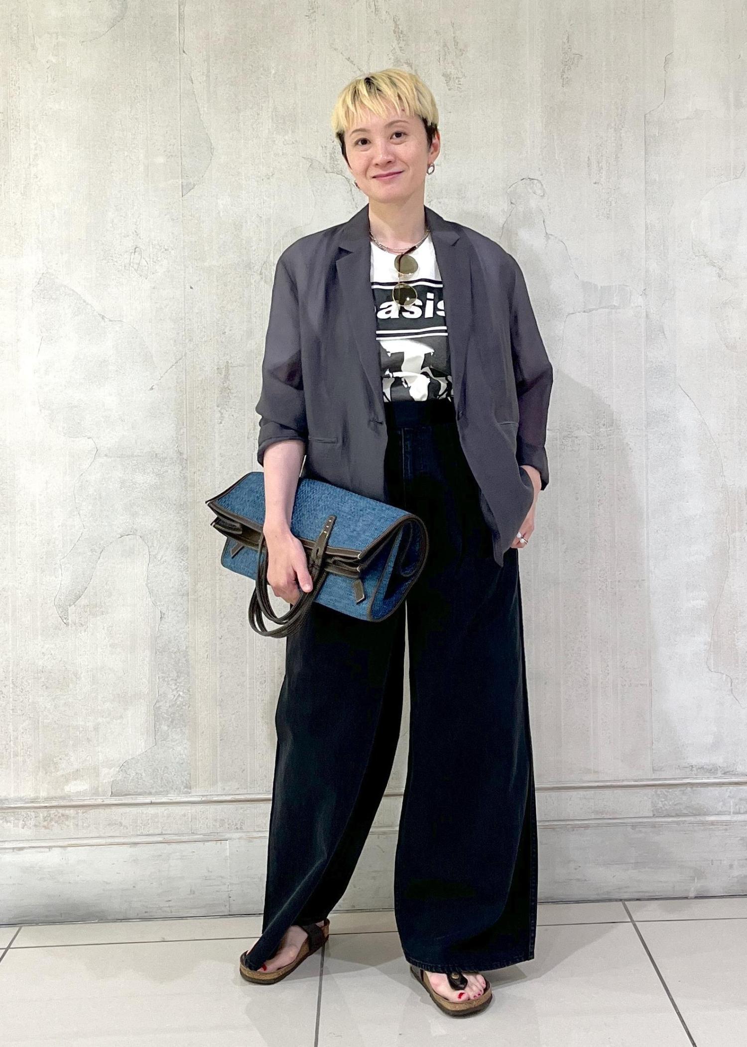 全体的にモノトーンでシックな色合わせにして、小物で少し渋めのカラーを加えました。