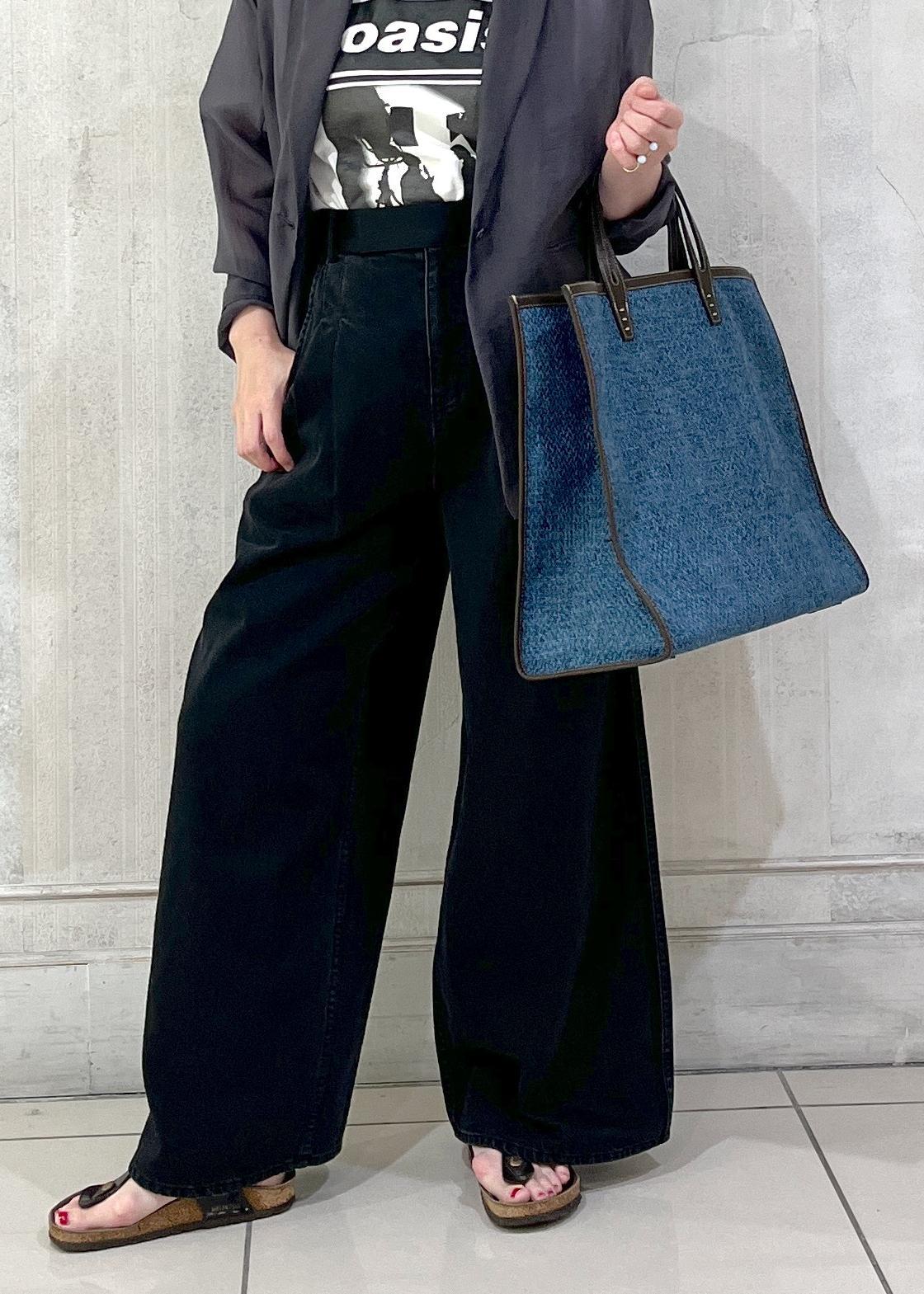 EMOELLE【EMOELLE】・【サステナブル】ドレスデニムパンツブラック系 / 38¥22,000レビューウエストをインして履きたくなる、サテンベルトがポイントのタックパンツ。