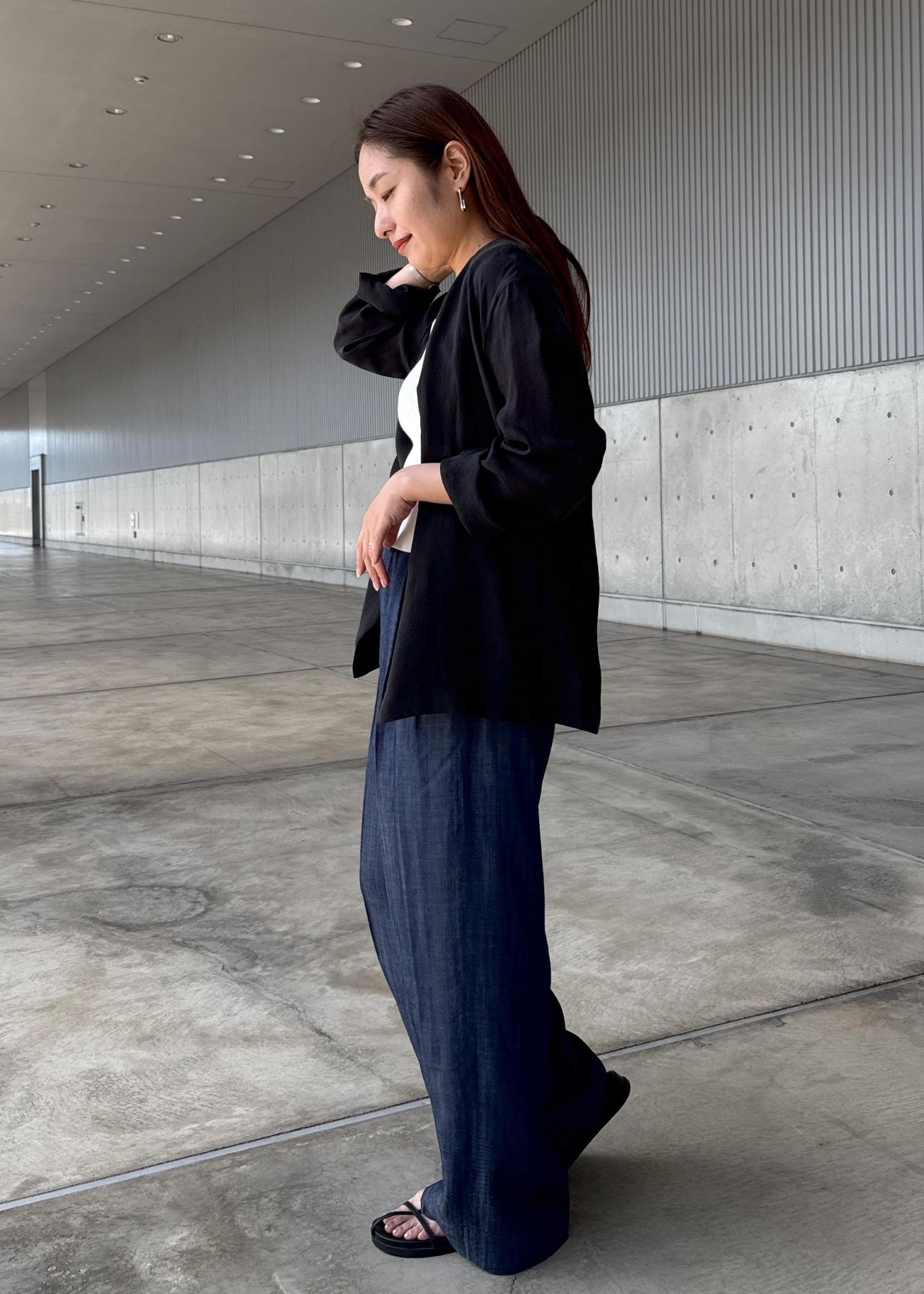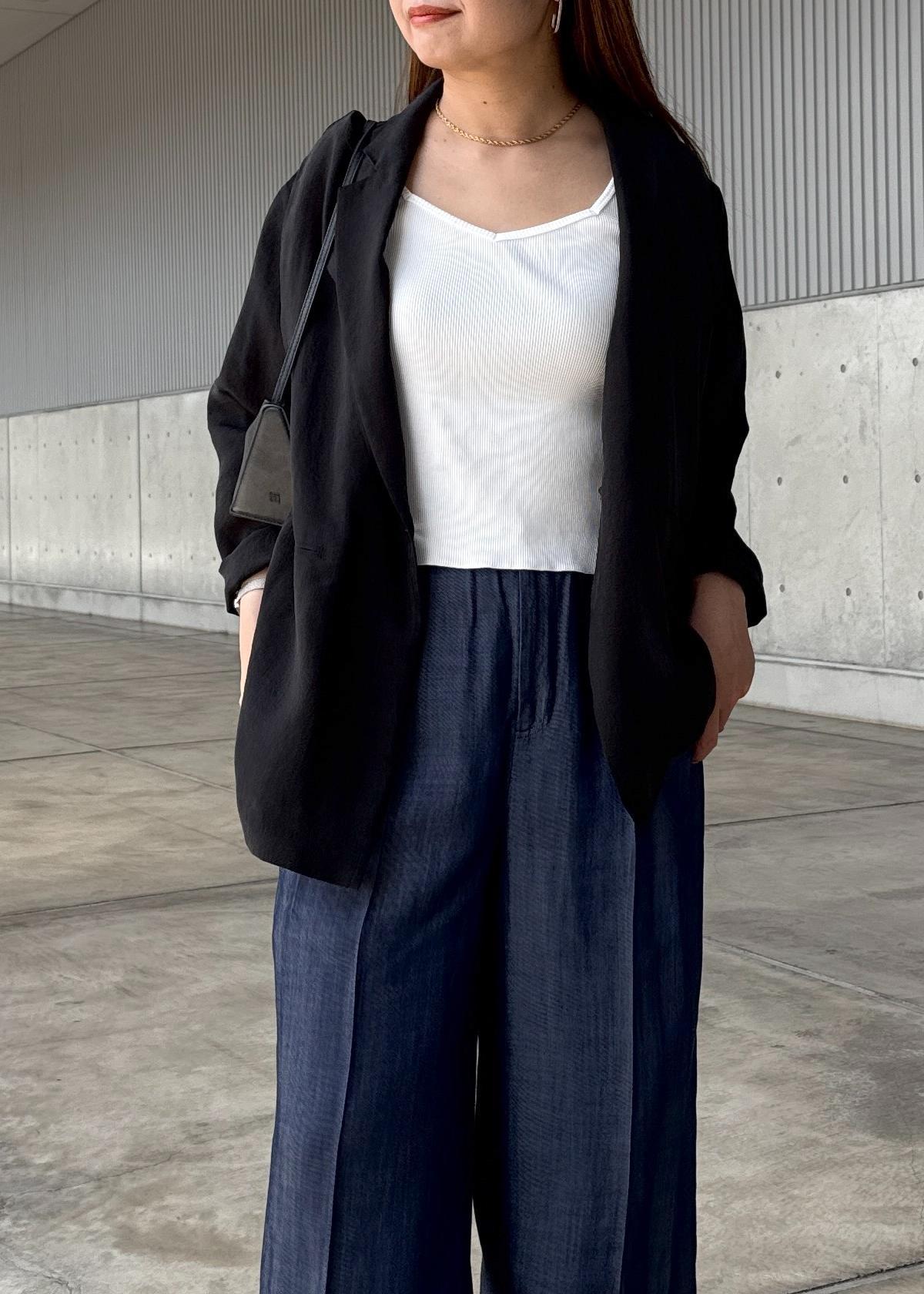 ラインは結構太めですが、落ち感のある素材なのでボリュームが出過ぎることなくスッキリと着用できました! -